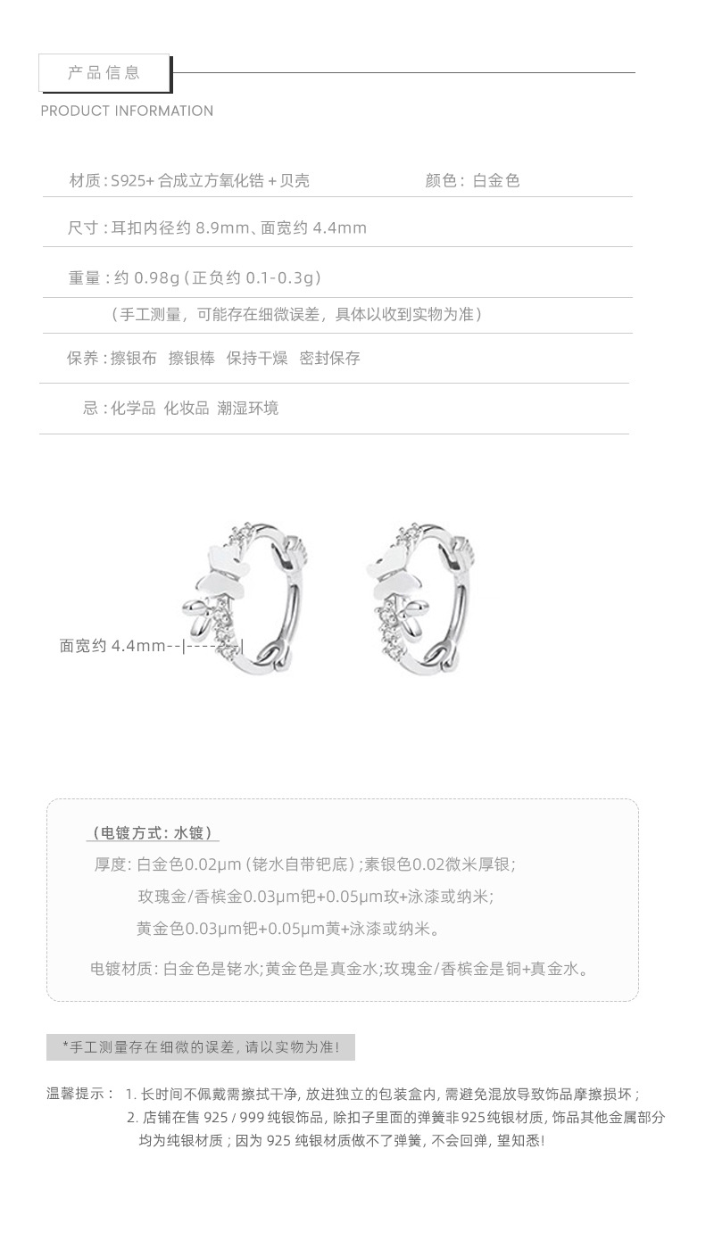 E廠【XDQ11406E】S925純銀時尚ins蝴蝶貝殼耳扣女小眾高級感氣質百搭耳環耳環 25.12-2