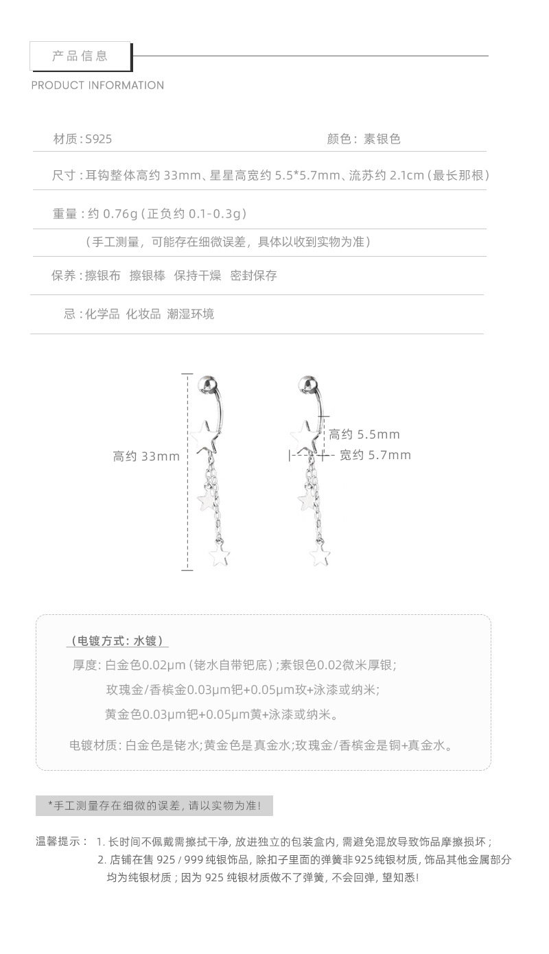 E廠【XDQ11645E】小眾設計925純銀星星流蘇耳環女後掛五角星流蘇ins耳環耳飾 26.03-2