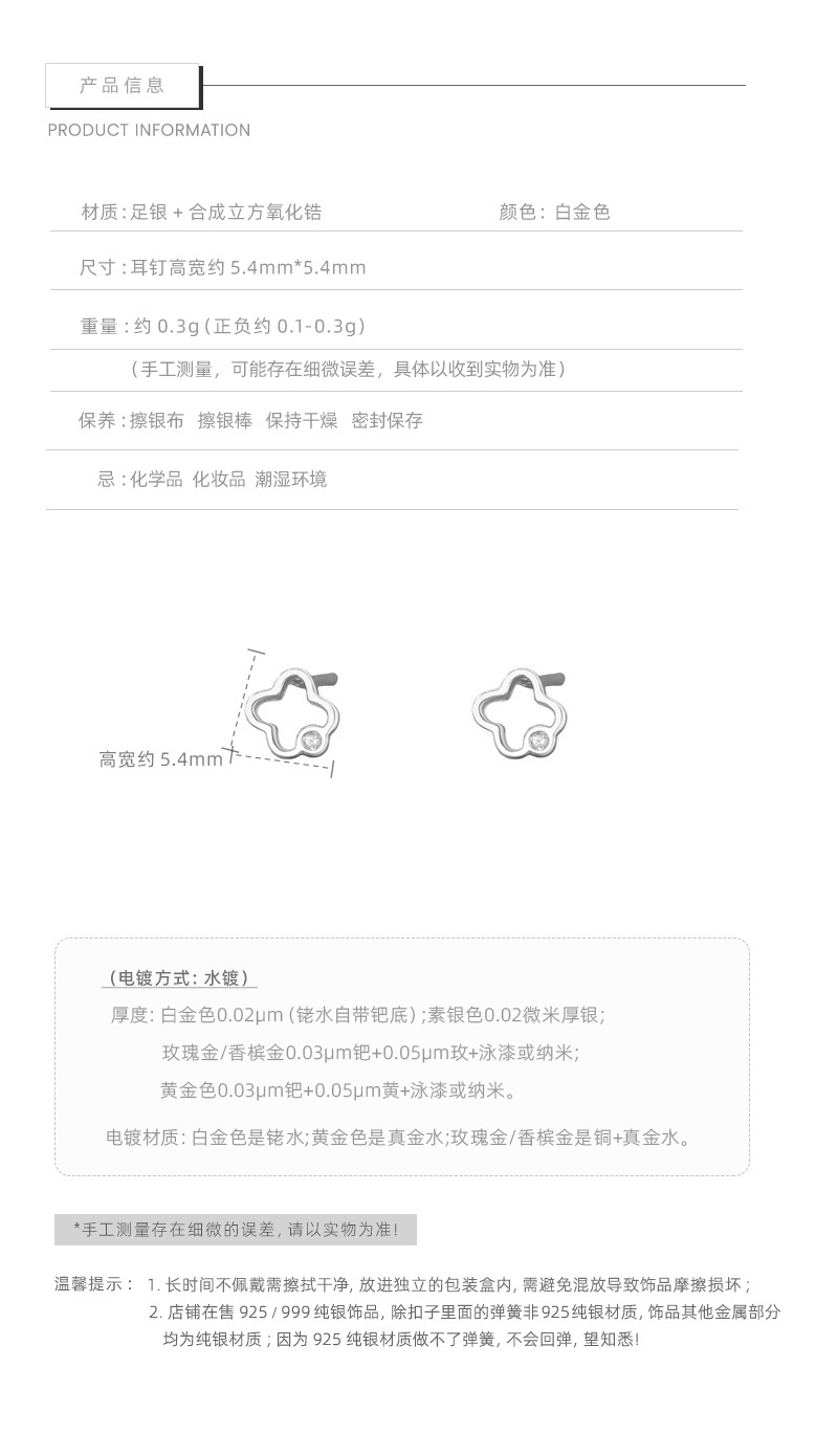 E廠【XDQ11651E】S999純銀小眾設計四葉草耳環女簡約氣質鏤空花朵日常百搭耳飾 26.03-2