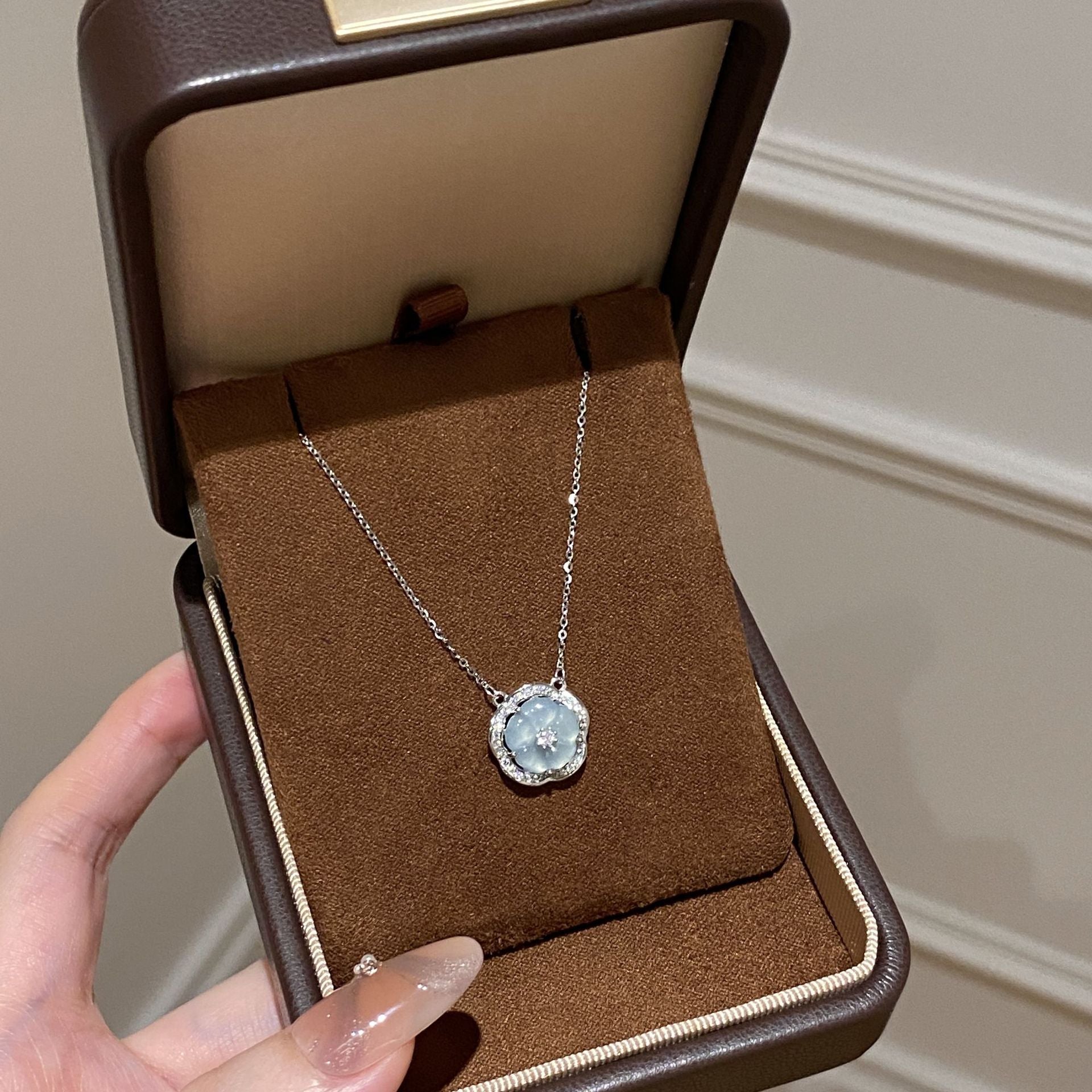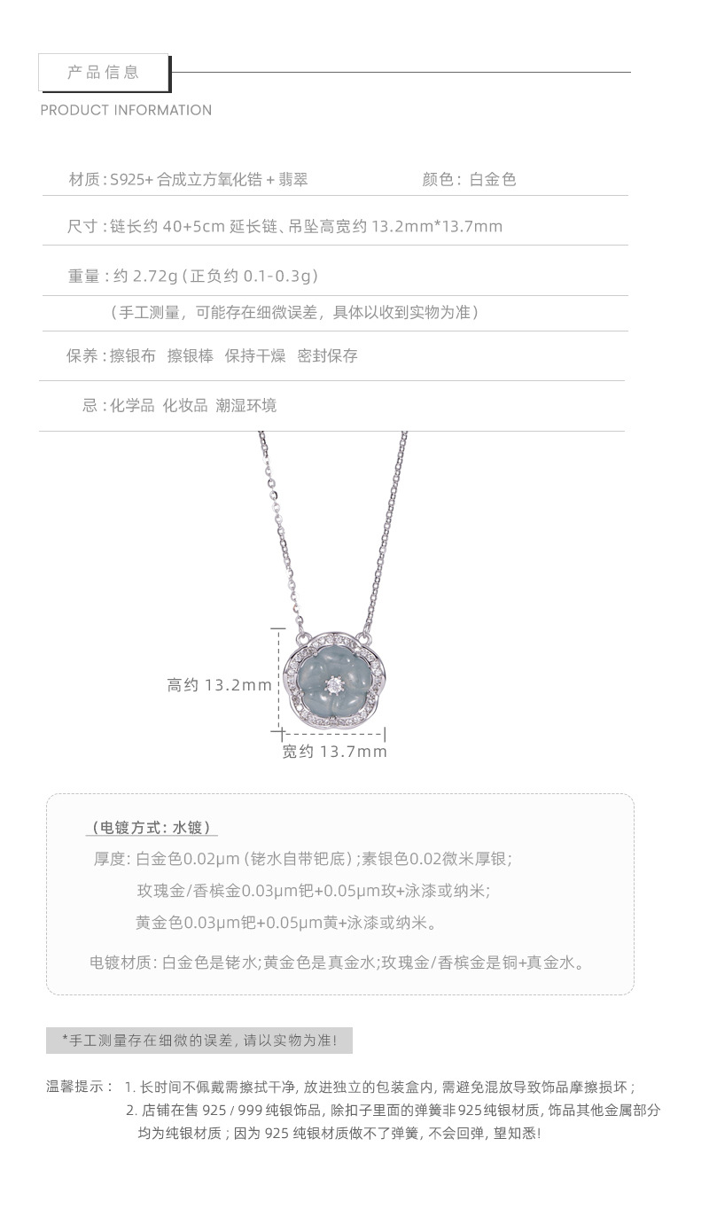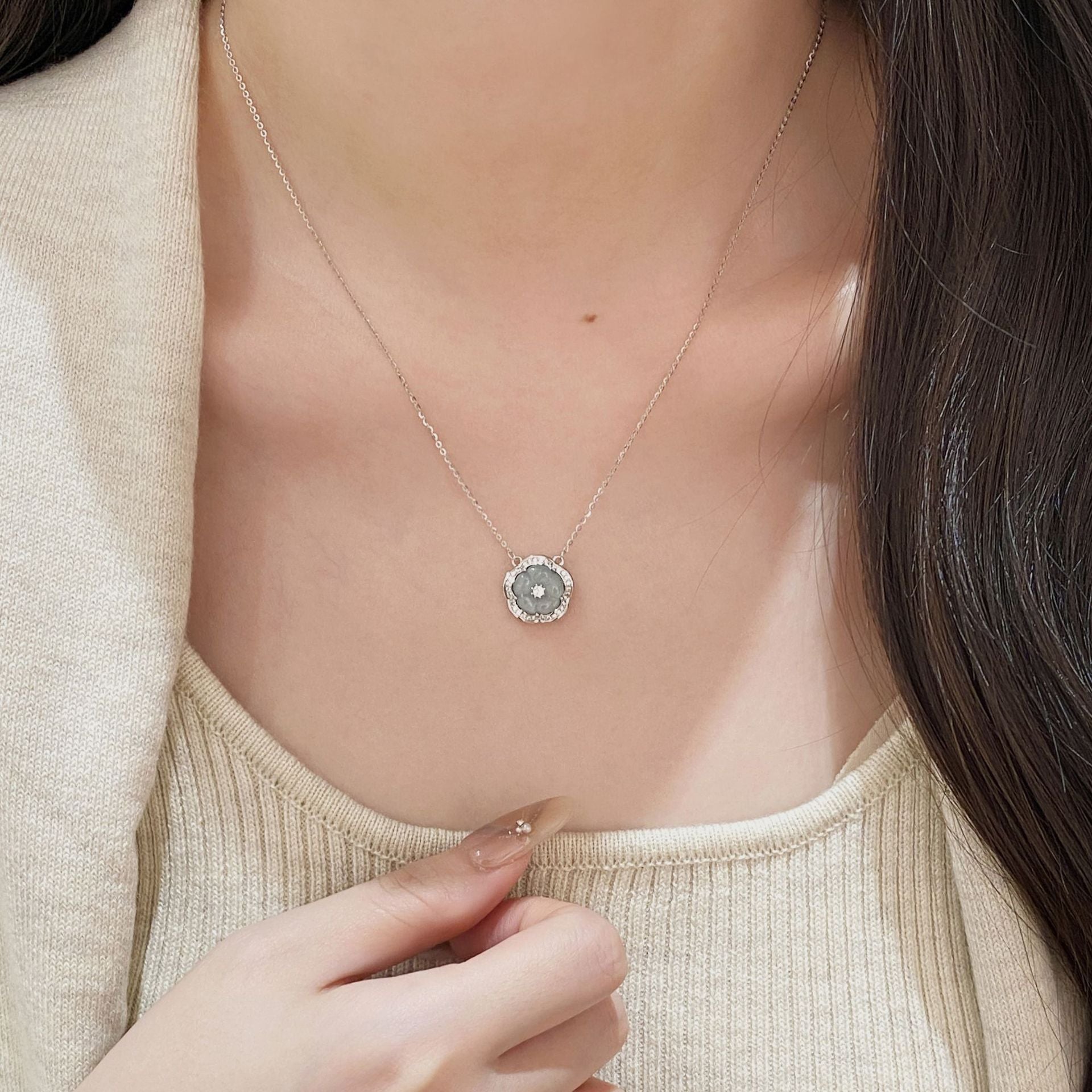 E廠【XDQ1854N】S925純銀新中式天然翡翠花朵項鍊女輕奢精緻感鎖骨鏈 25.11-4