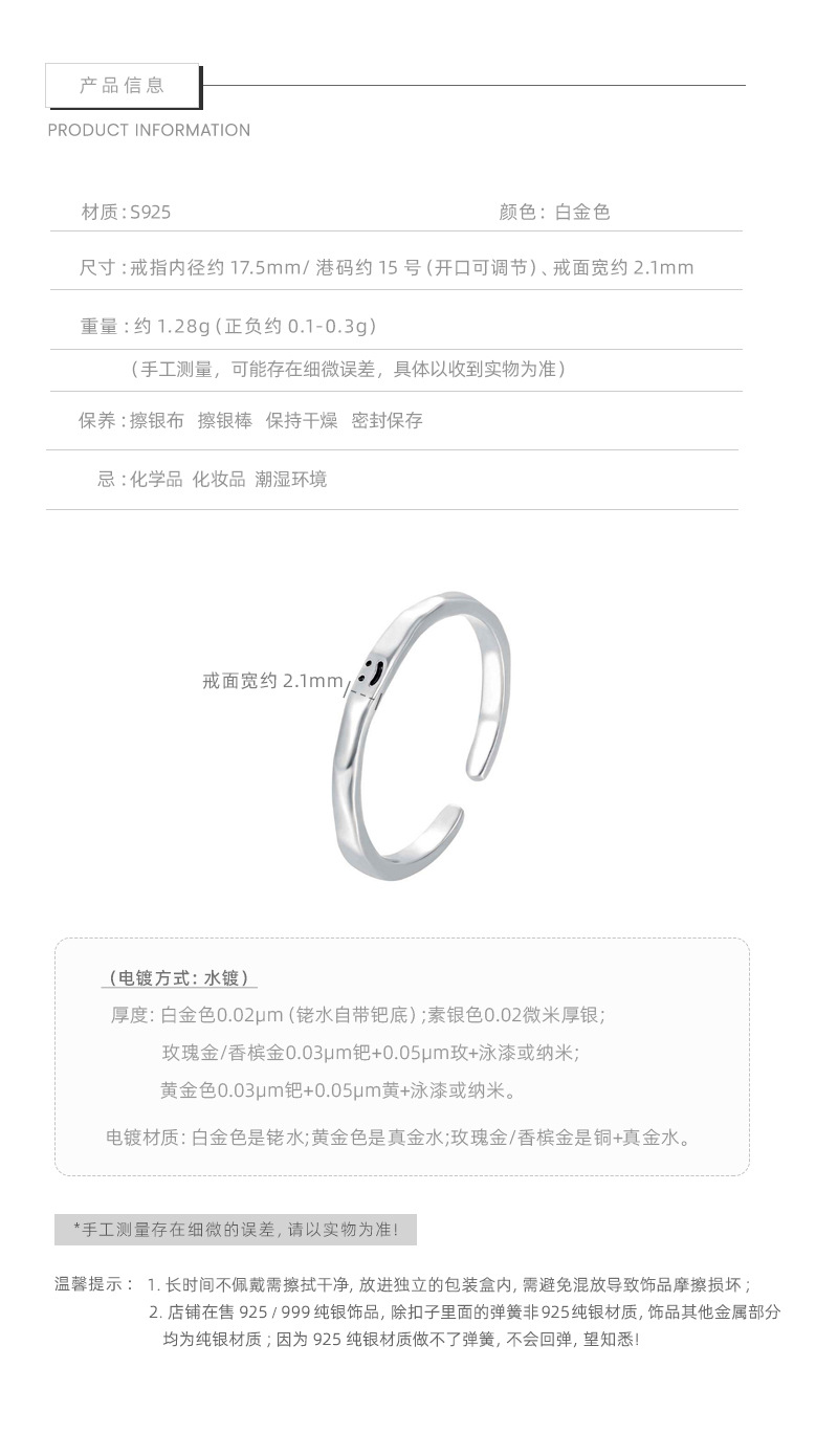 E廠【XDQ8297R】S925純銀小眾設計可愛微笑戒指女簡約小清新素圈百搭開口指環 25.12-4