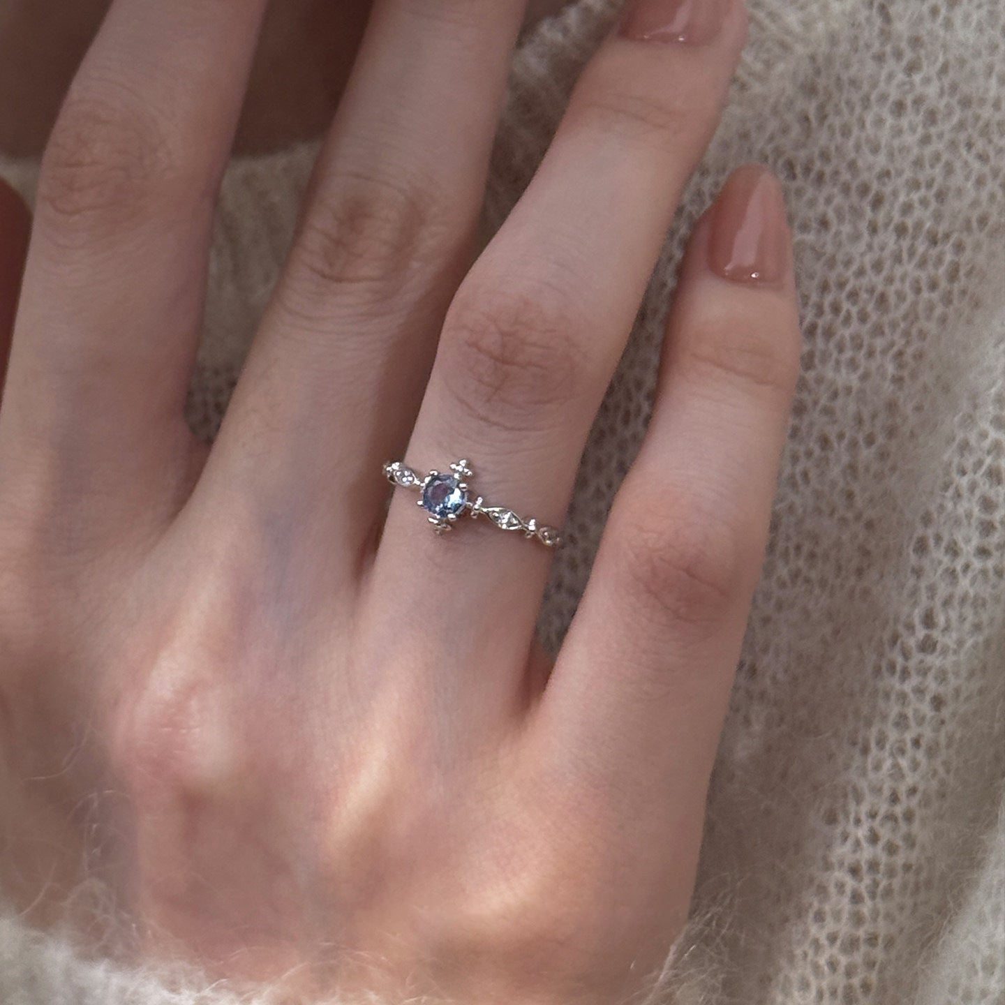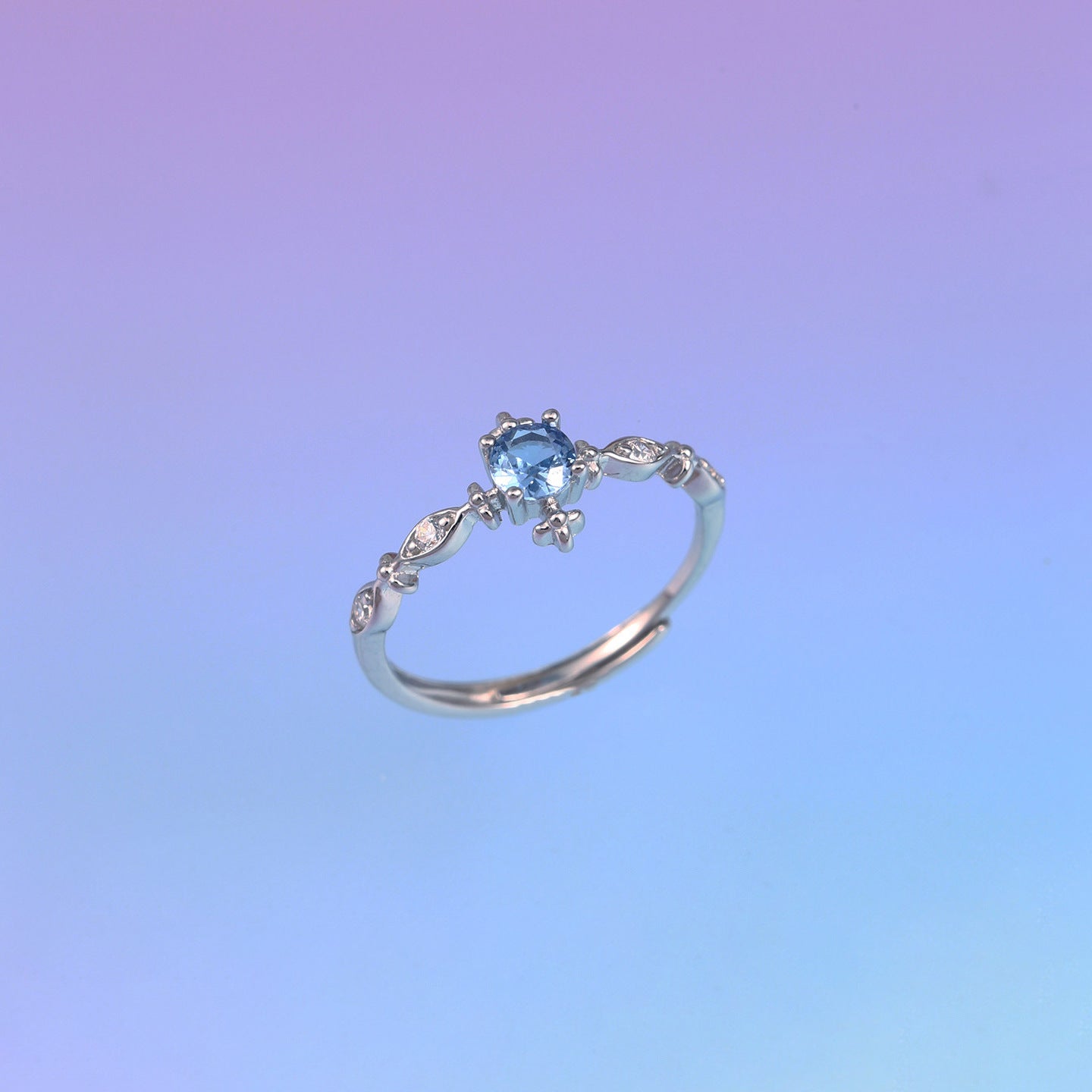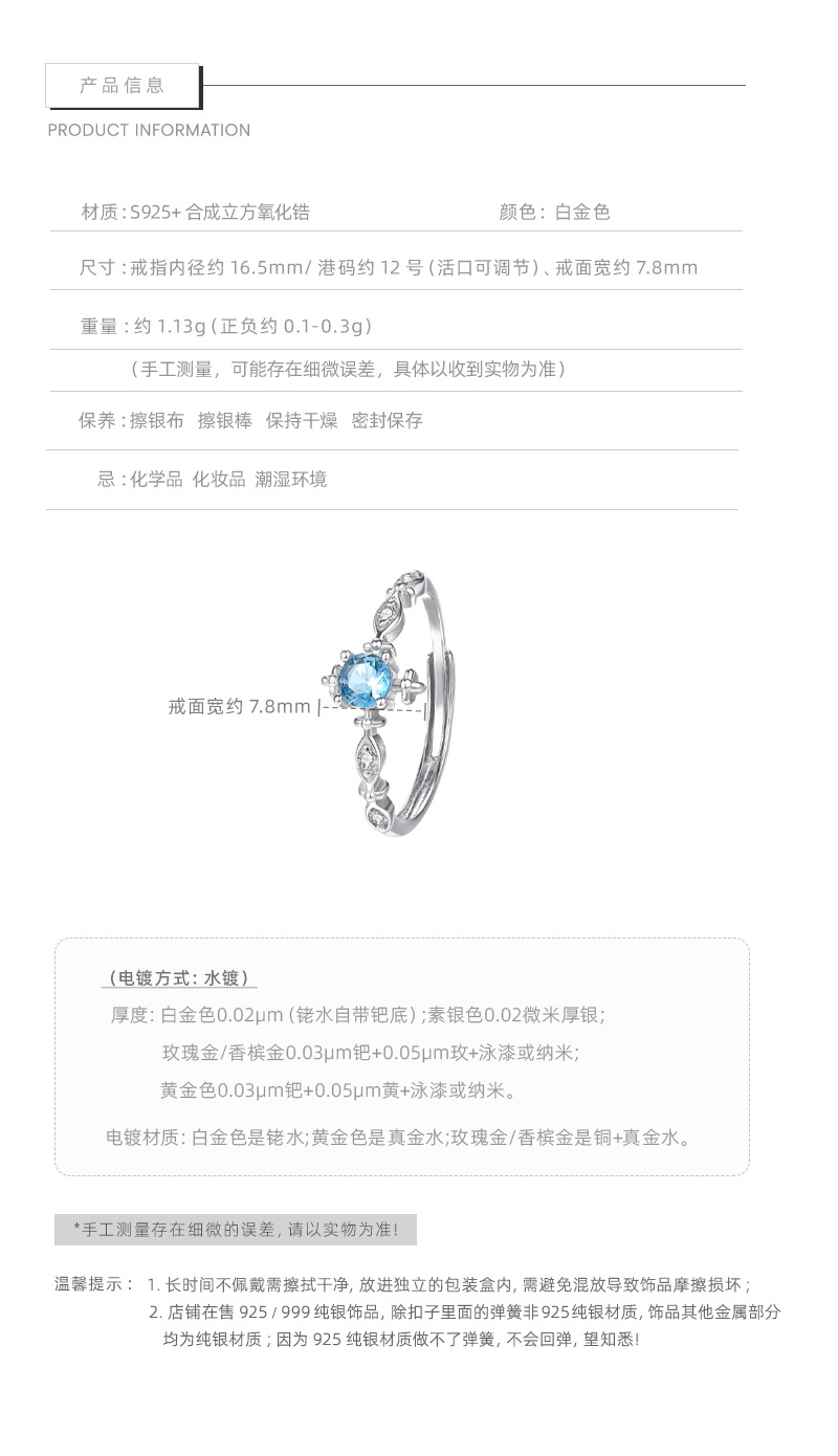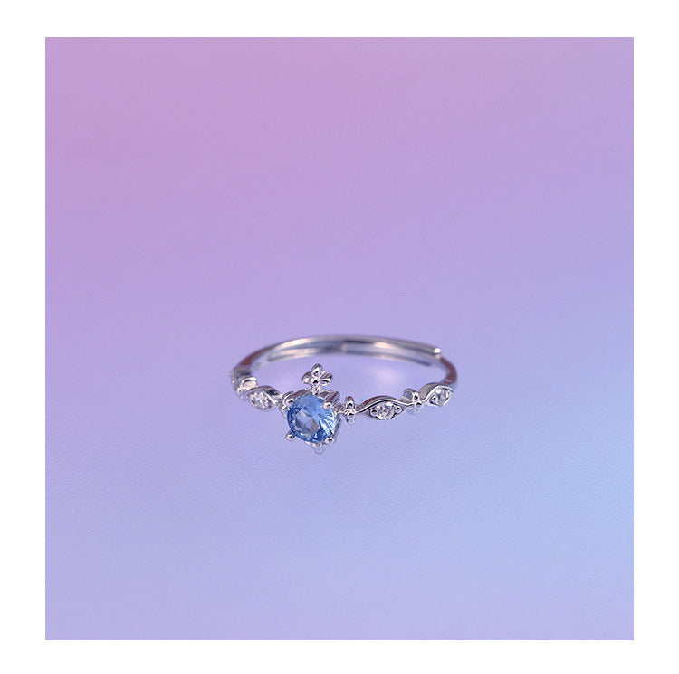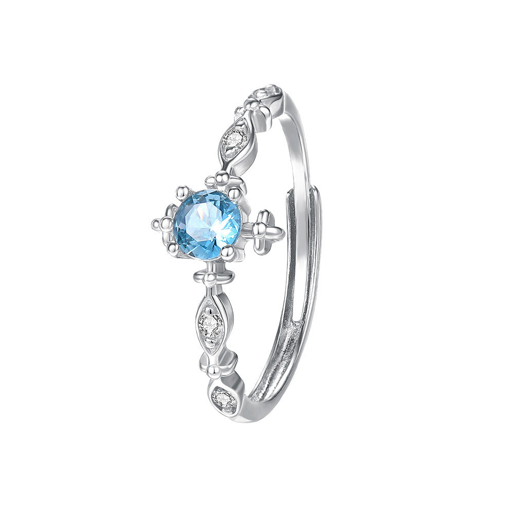 E廠【XDQ8332R】S925純銀輕奢精緻爆閃海藍鋯石戒指女小眾設計百搭開口指環 26.03-3