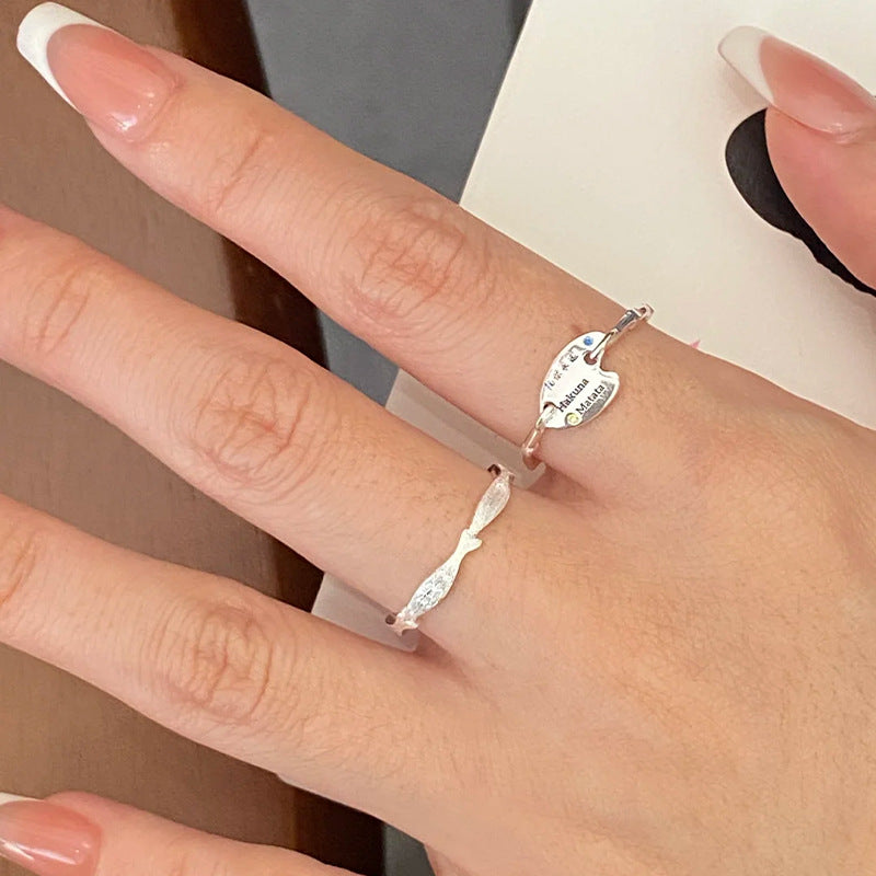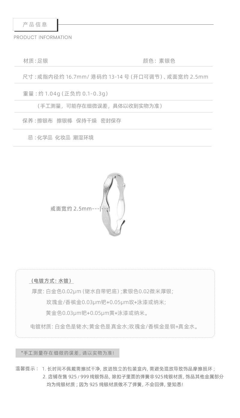 E廠【XDQ8448R】S999純銀小眾設計拉絲小魚戒指女輕奢ins時尚個性開口指環潮 25.11-4