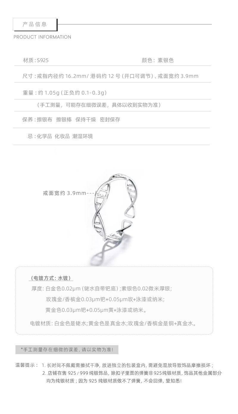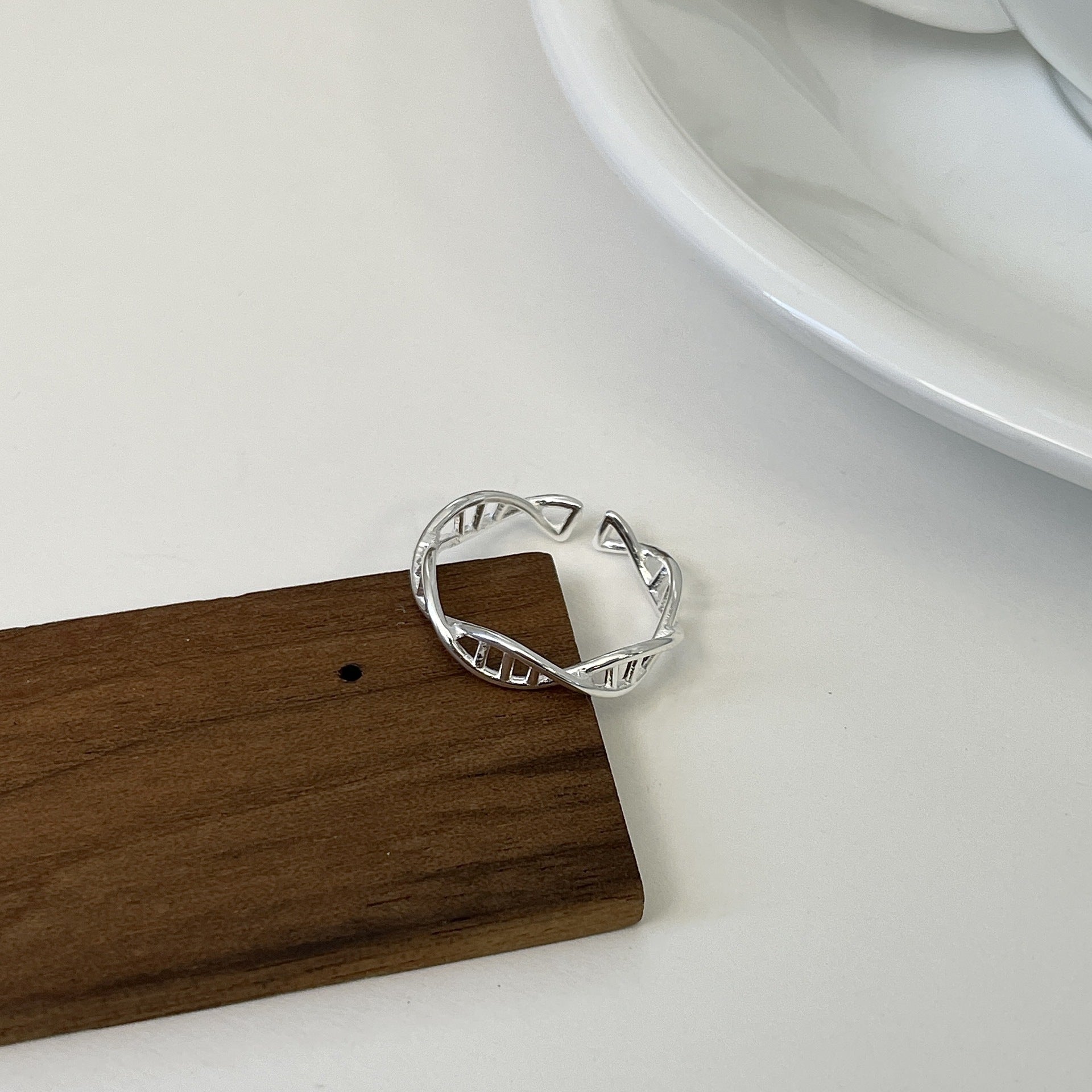 F廠【XDQ8609R】S925純銀DNA螺紋戒指小眾設計幾何交織食指戒女百搭開口指環 25.11-2