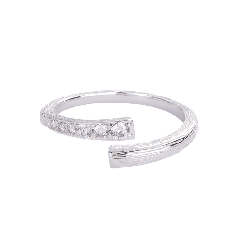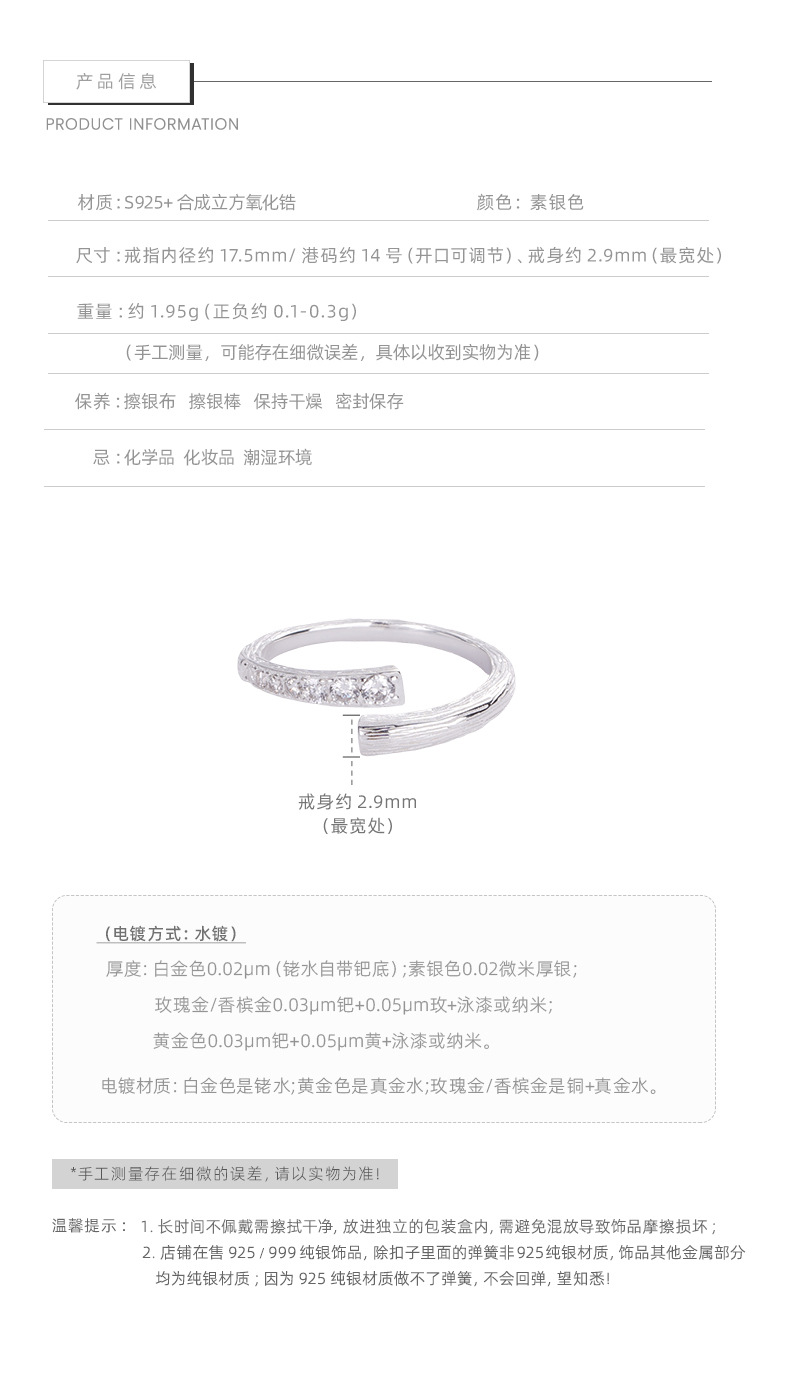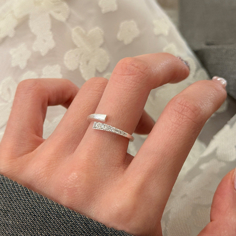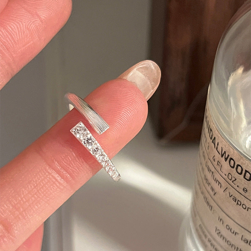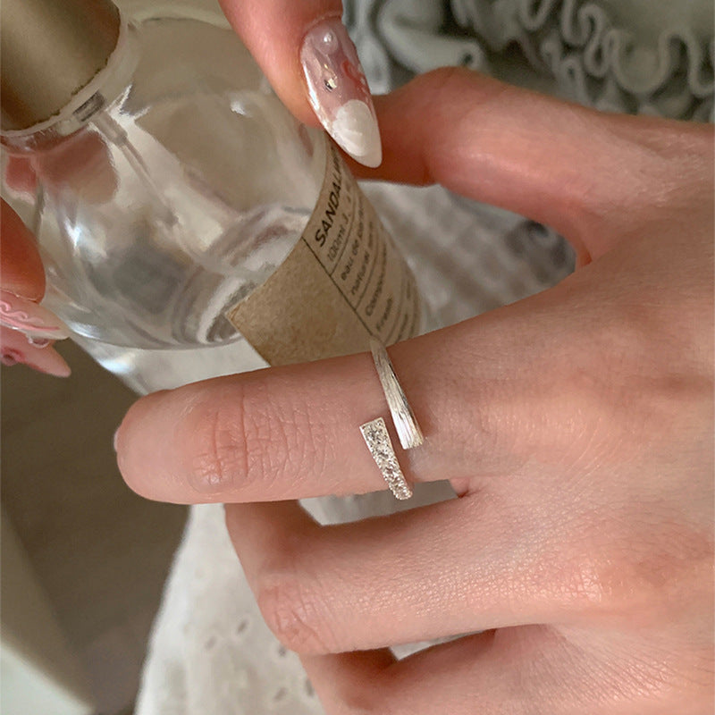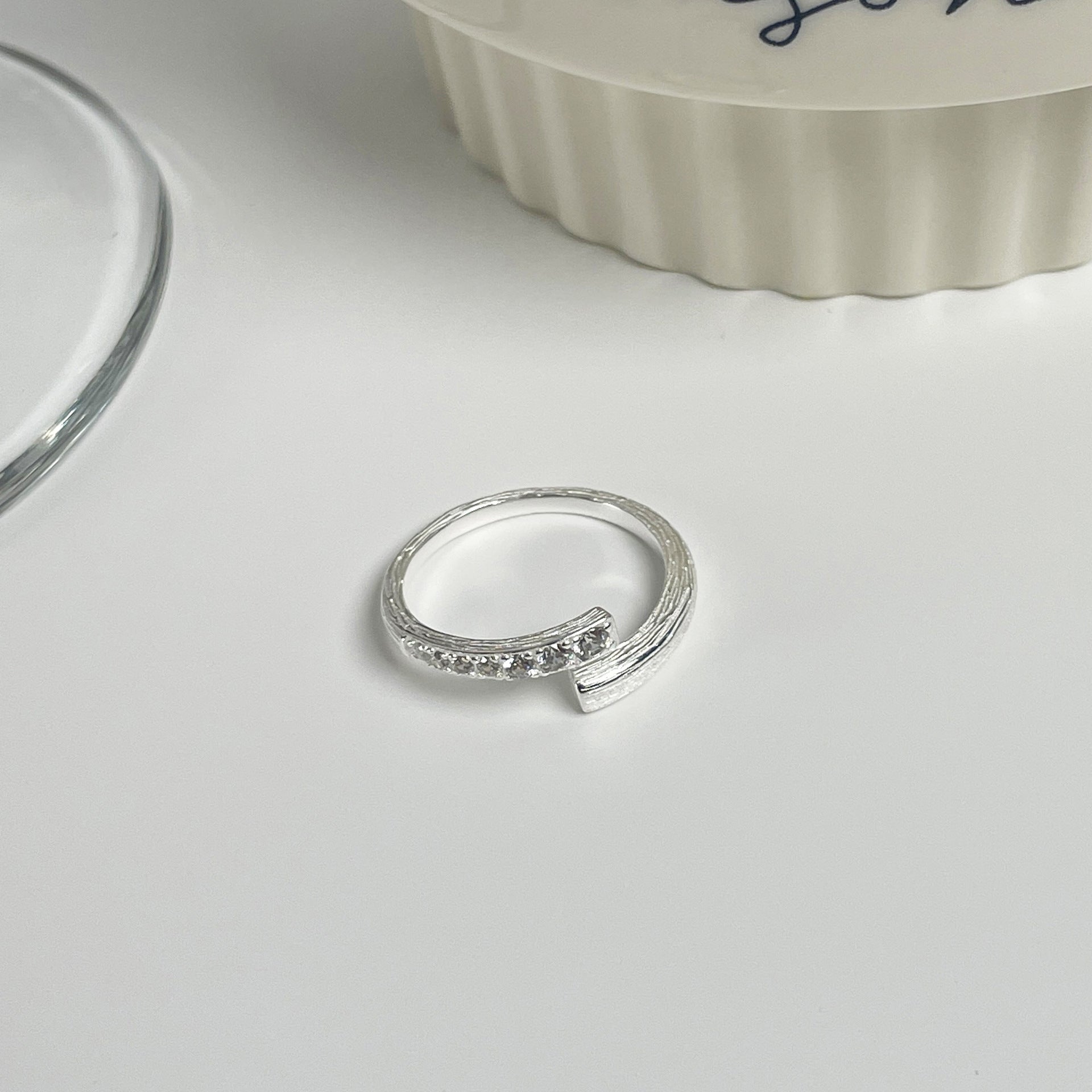 E廠【XDQ8634R】S925純銀韓版幾何交錯戒指女小眾ins拉絲鋯石氣質食指戒指環 25.11-4