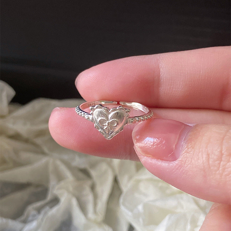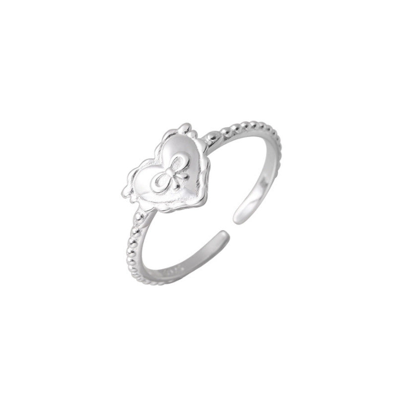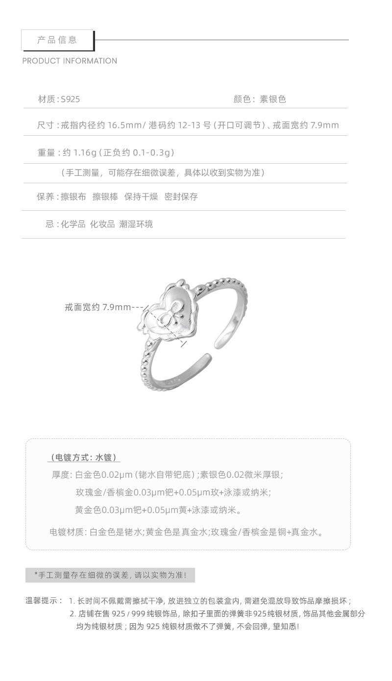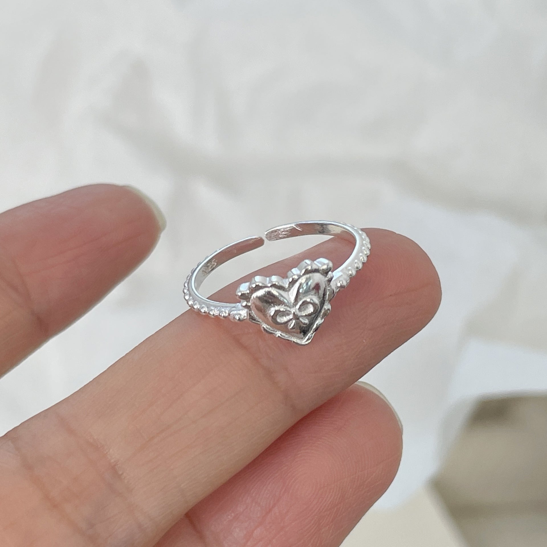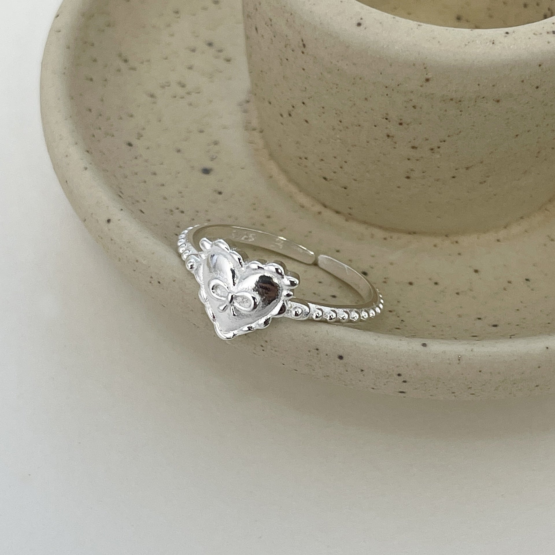 E廠【XDQ8637R】S925純銀韓版ins愛心蝴蝶結戒指女簡約甜美心形百搭時髦指環 25.11-4
