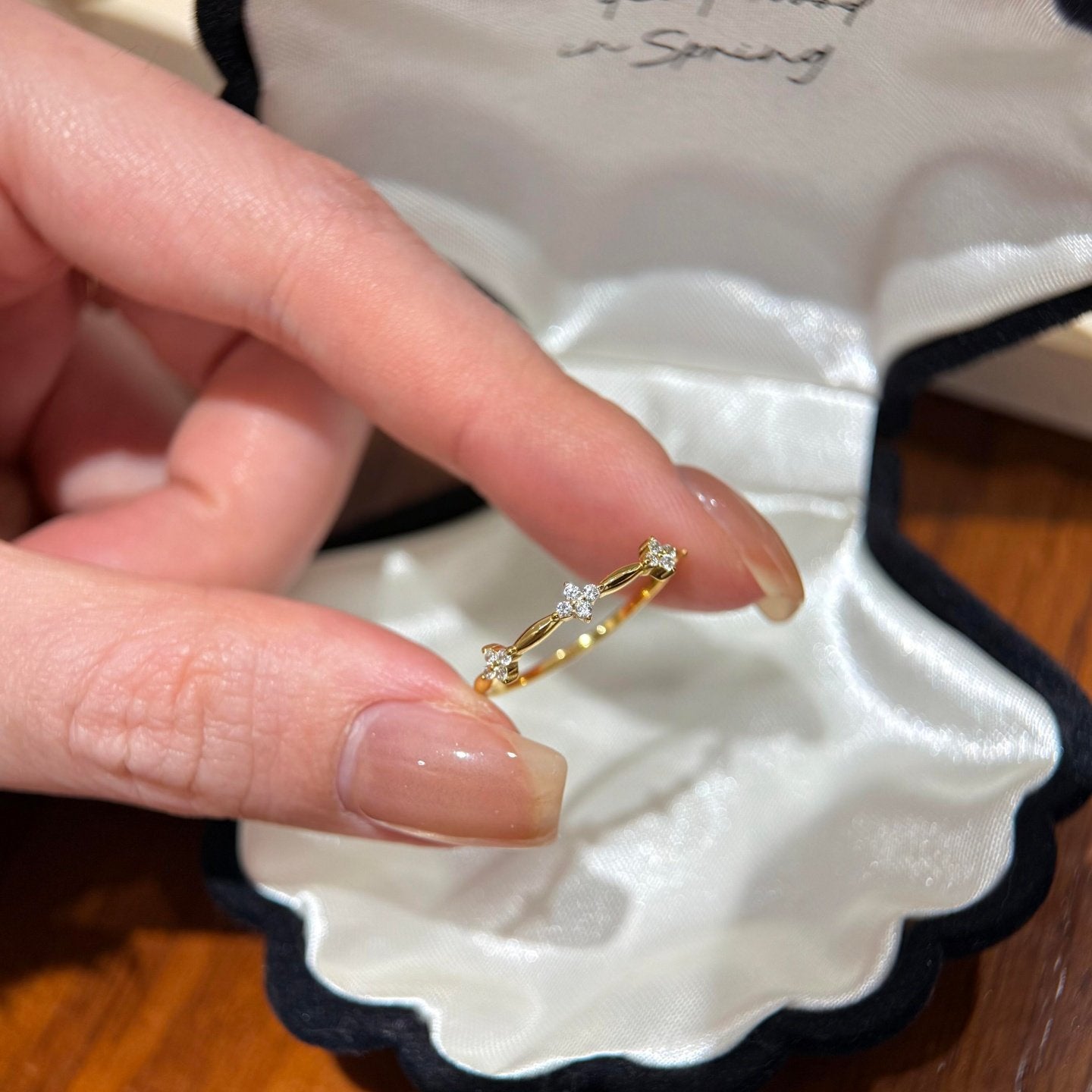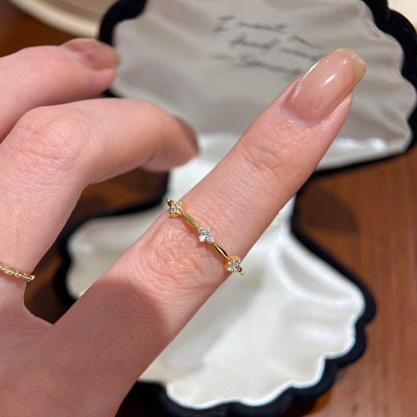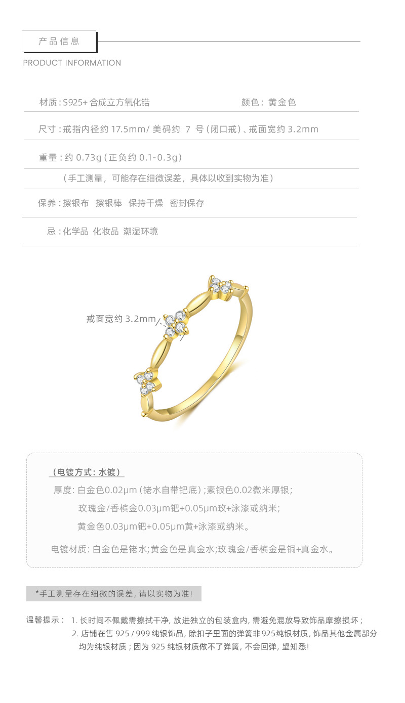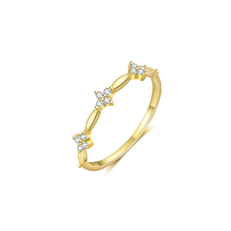 E廠【XDQ8816R】S925純銀簡約精緻四葉草戒指女碎鑽花朵氣質時髦百搭閉口指環 26.01-1