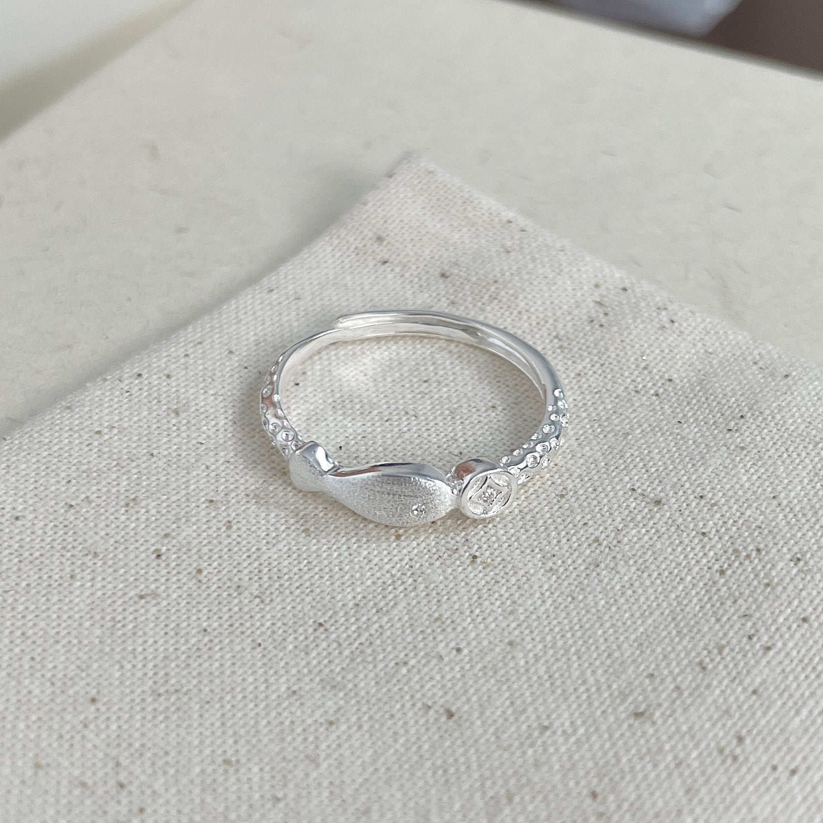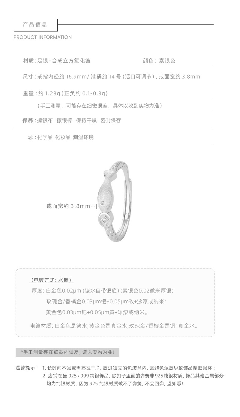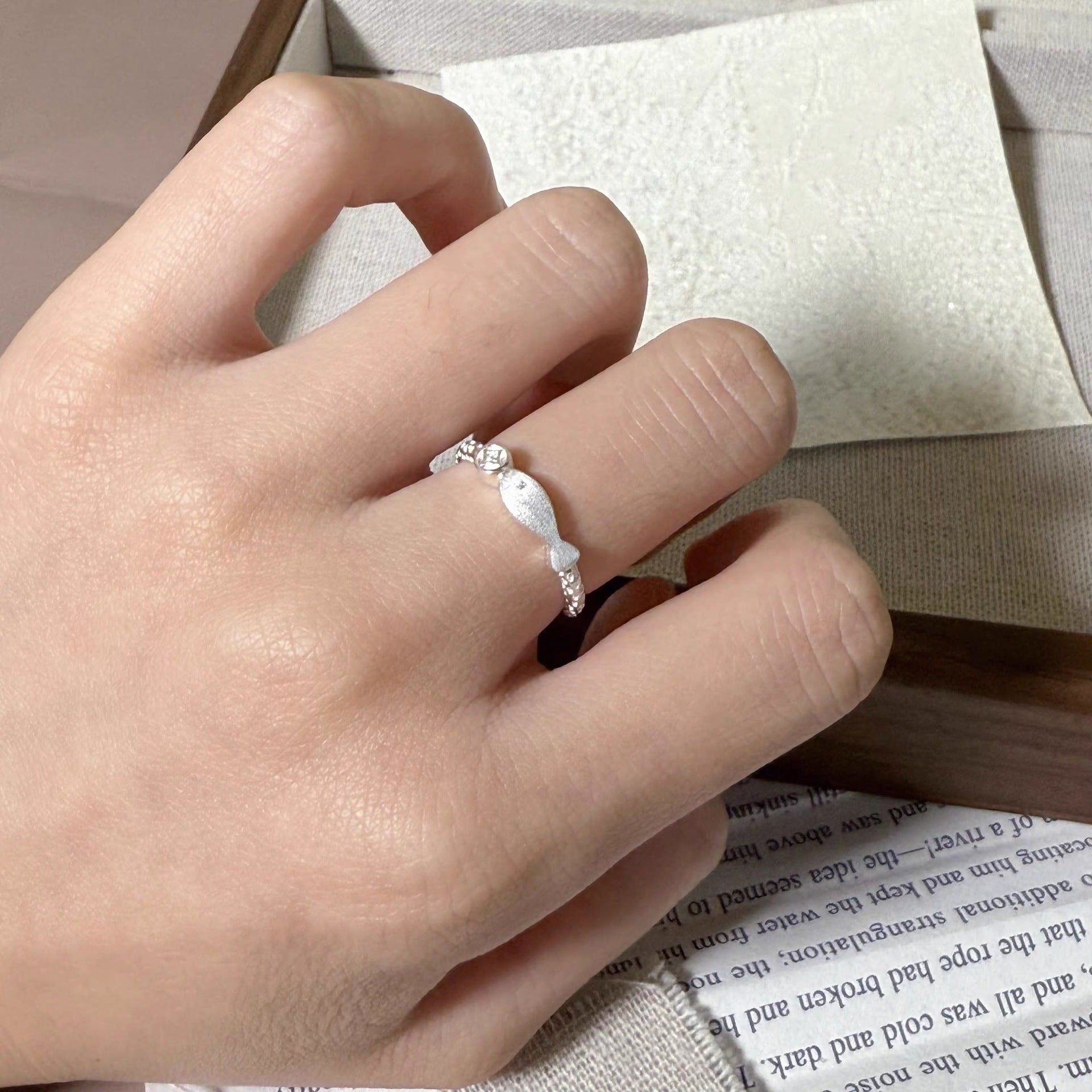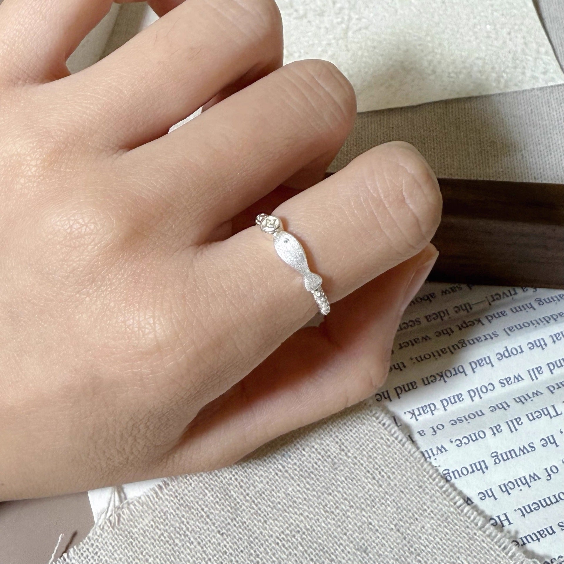 E廠【XDQ8864R】S999純銀精緻拉絲小魚錢幣戒指女時尚個性銅錢開口指環冷淡風 25.12-1