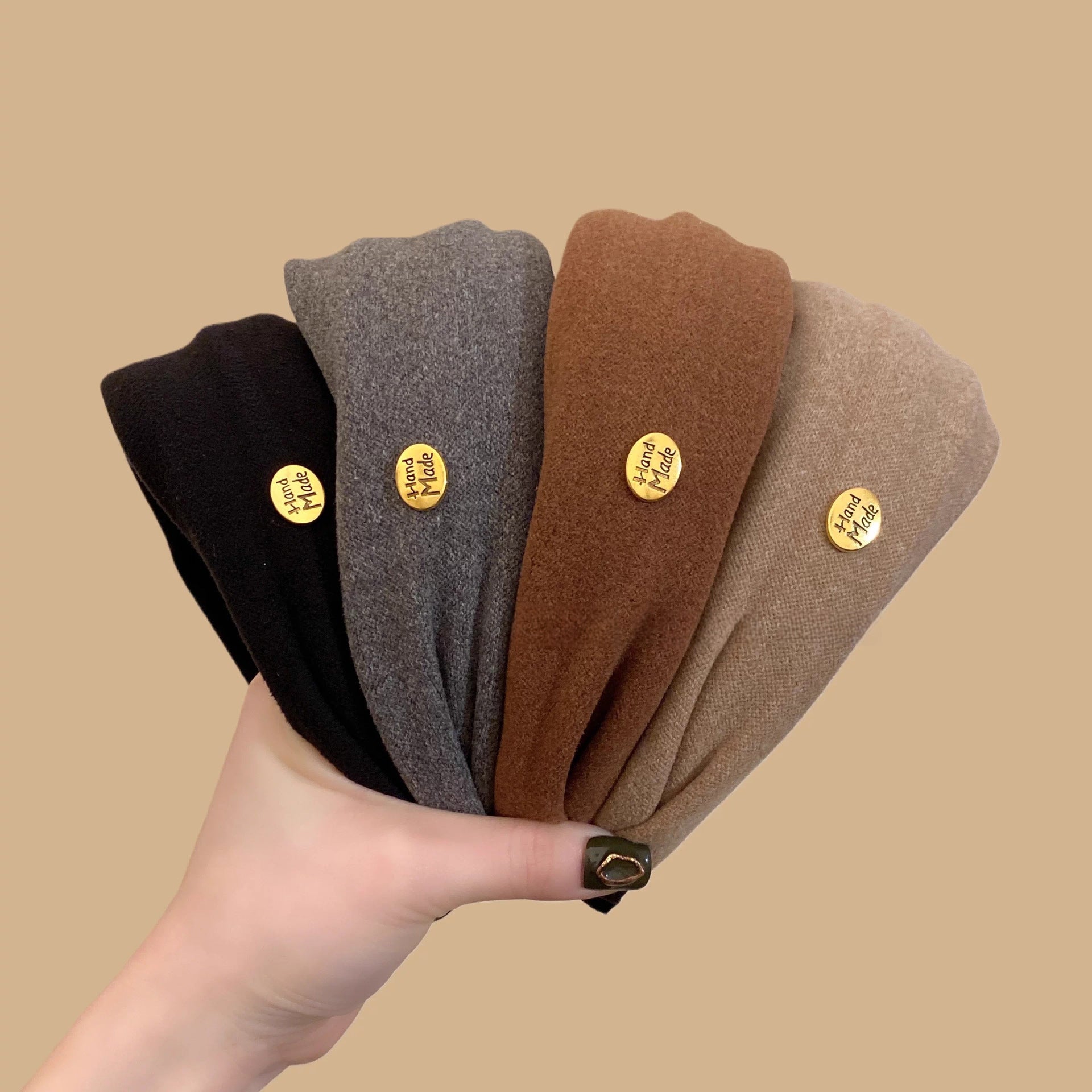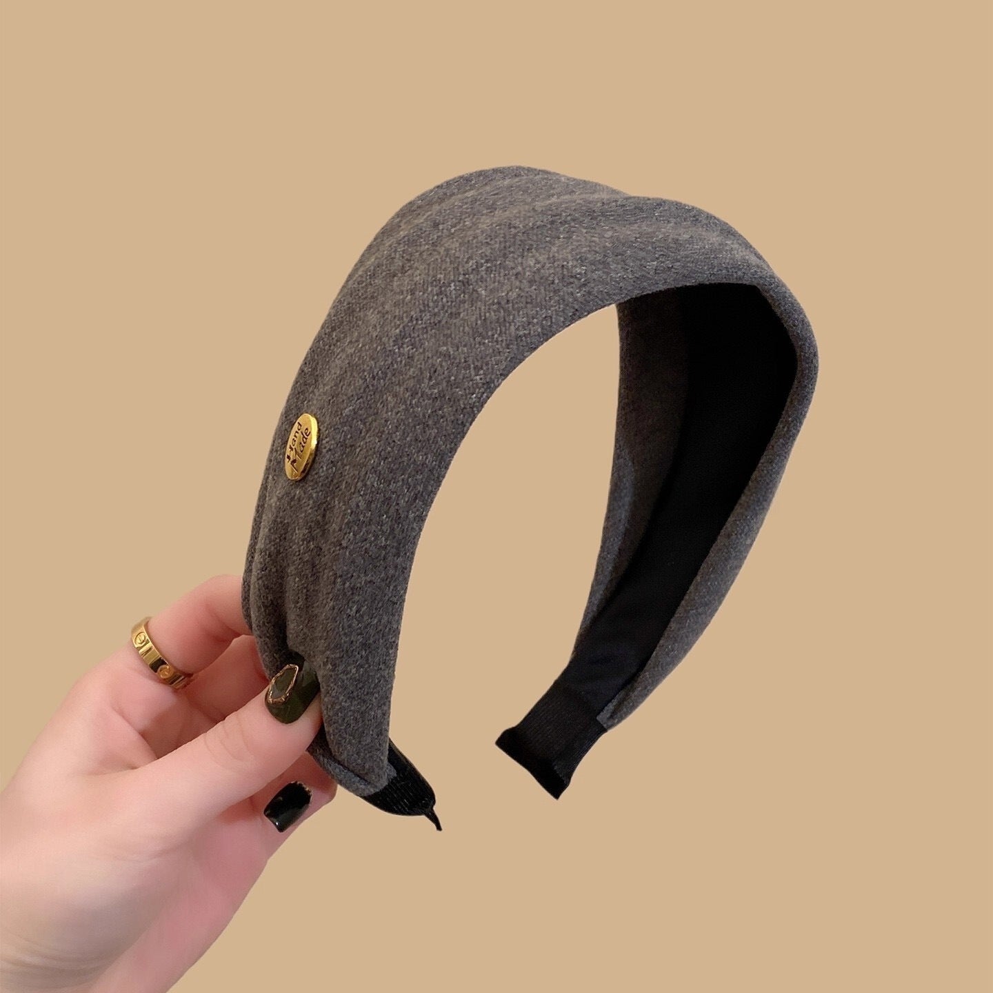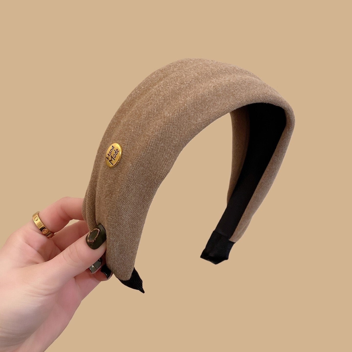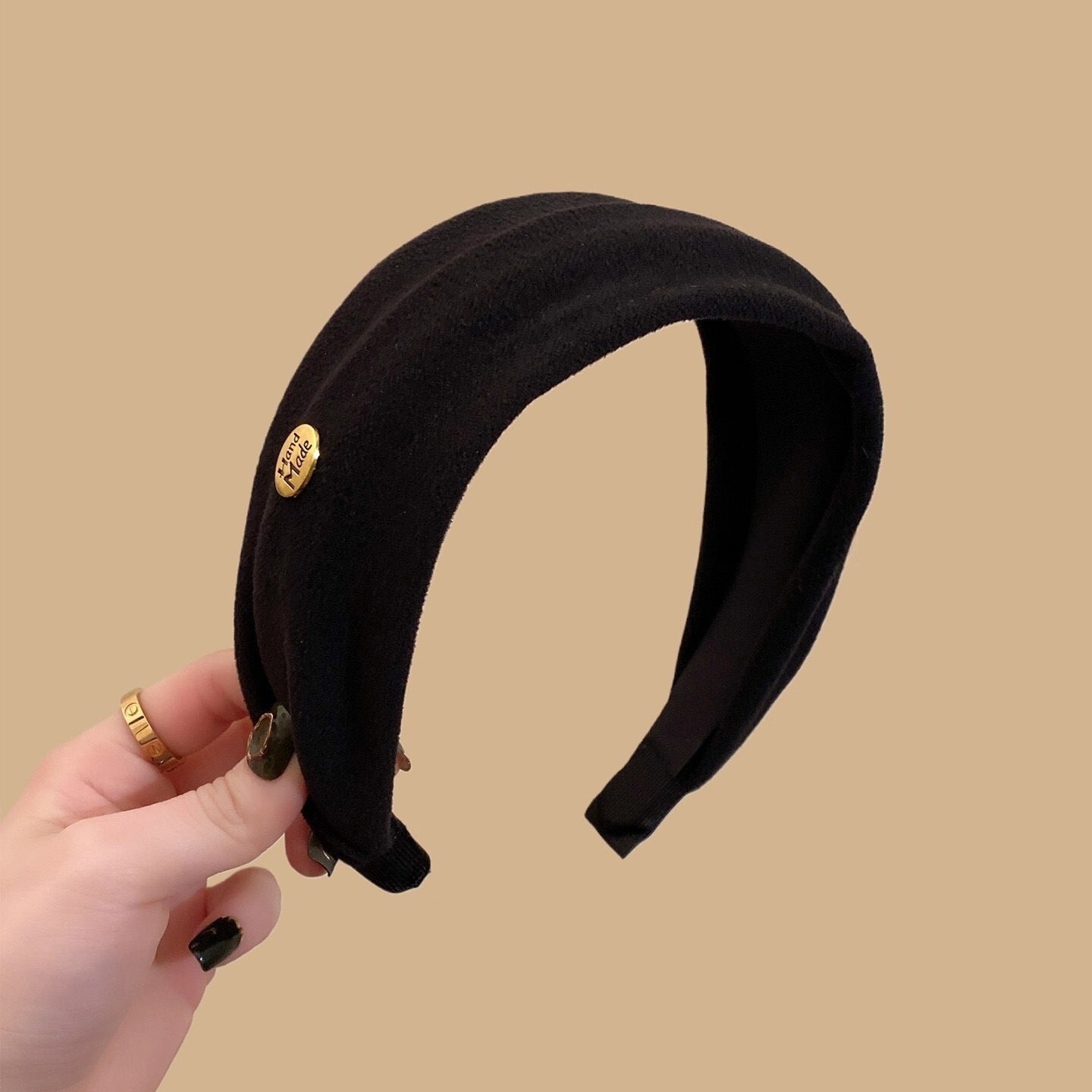 C廠【Y1028】韓國ins風小金標百搭絨面寬邊壓髮箍日常外戴洗臉頭箍高顱頂頭飾 26.01-1