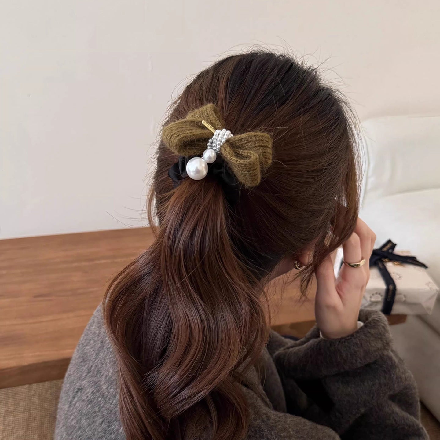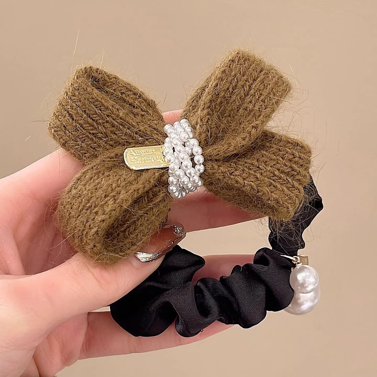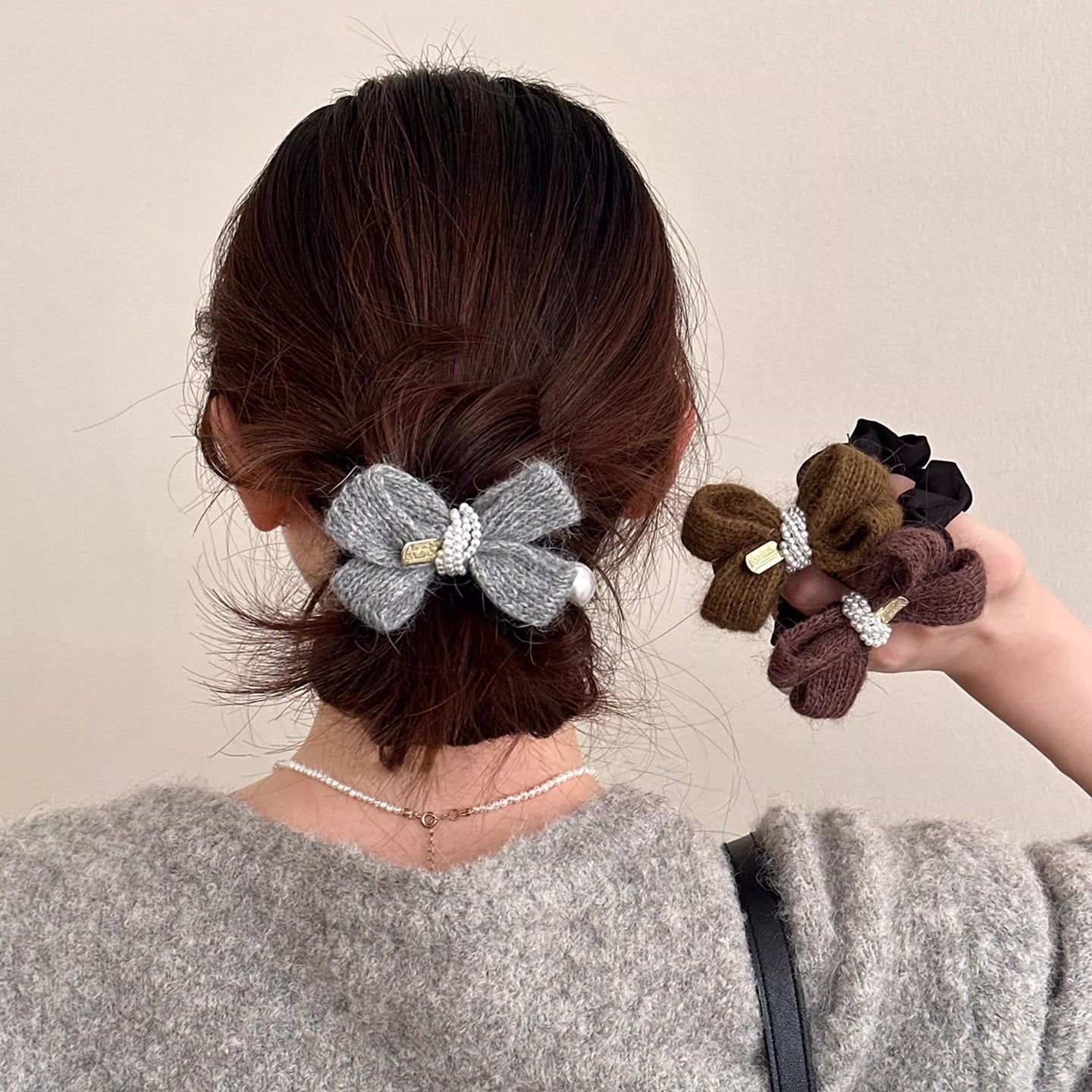 C廠【Y1072】秋冬毛線蝴蝶結針織髮圈女款高級感百搭頭繩扎丸子頭馬尾髮繩頭飾 26.01-2