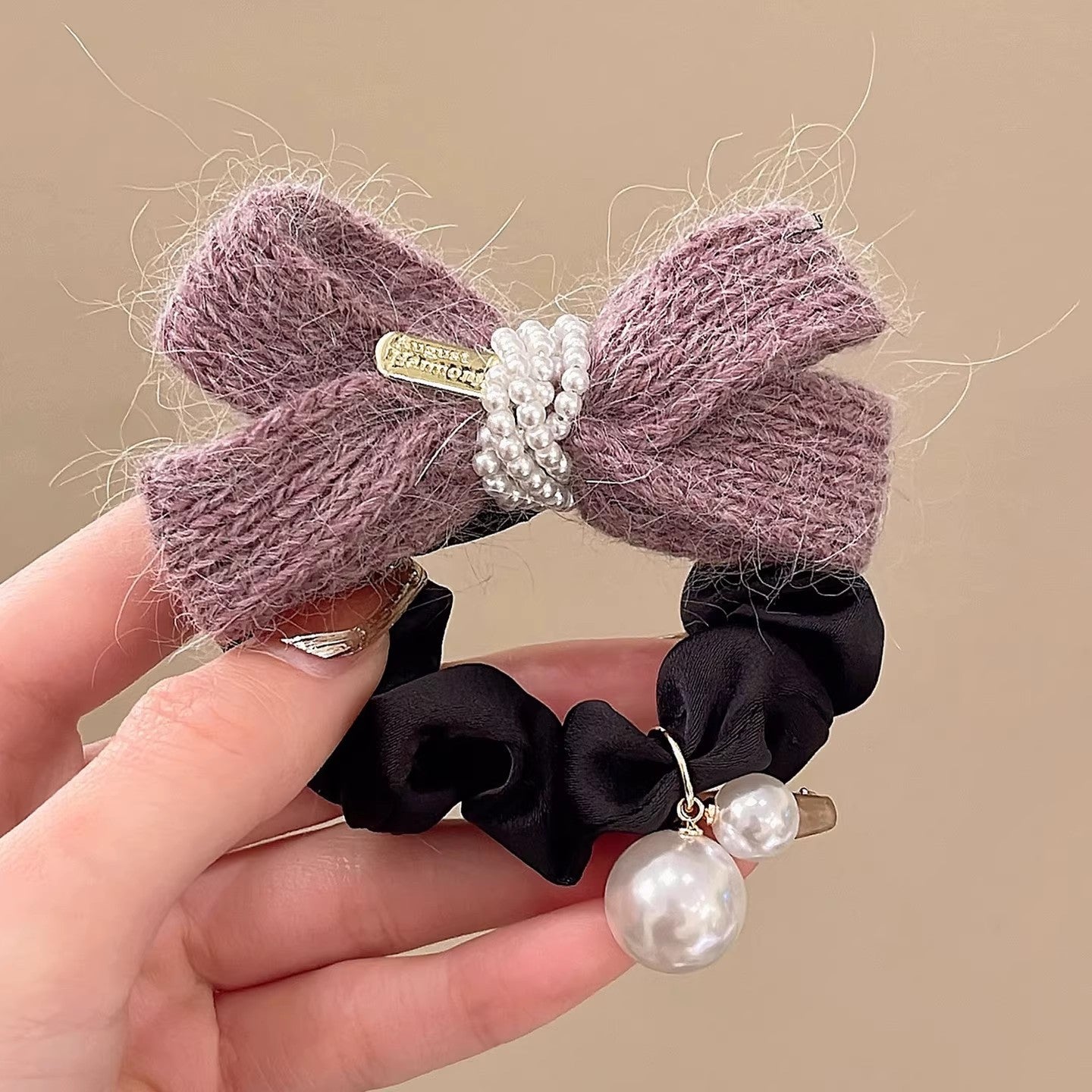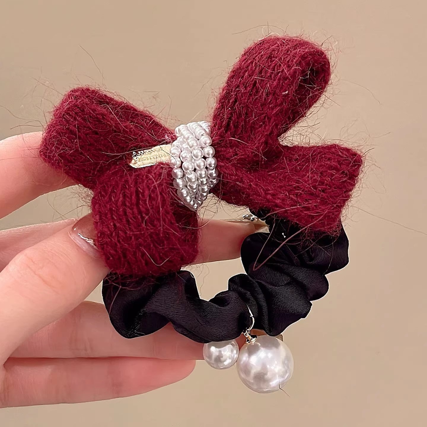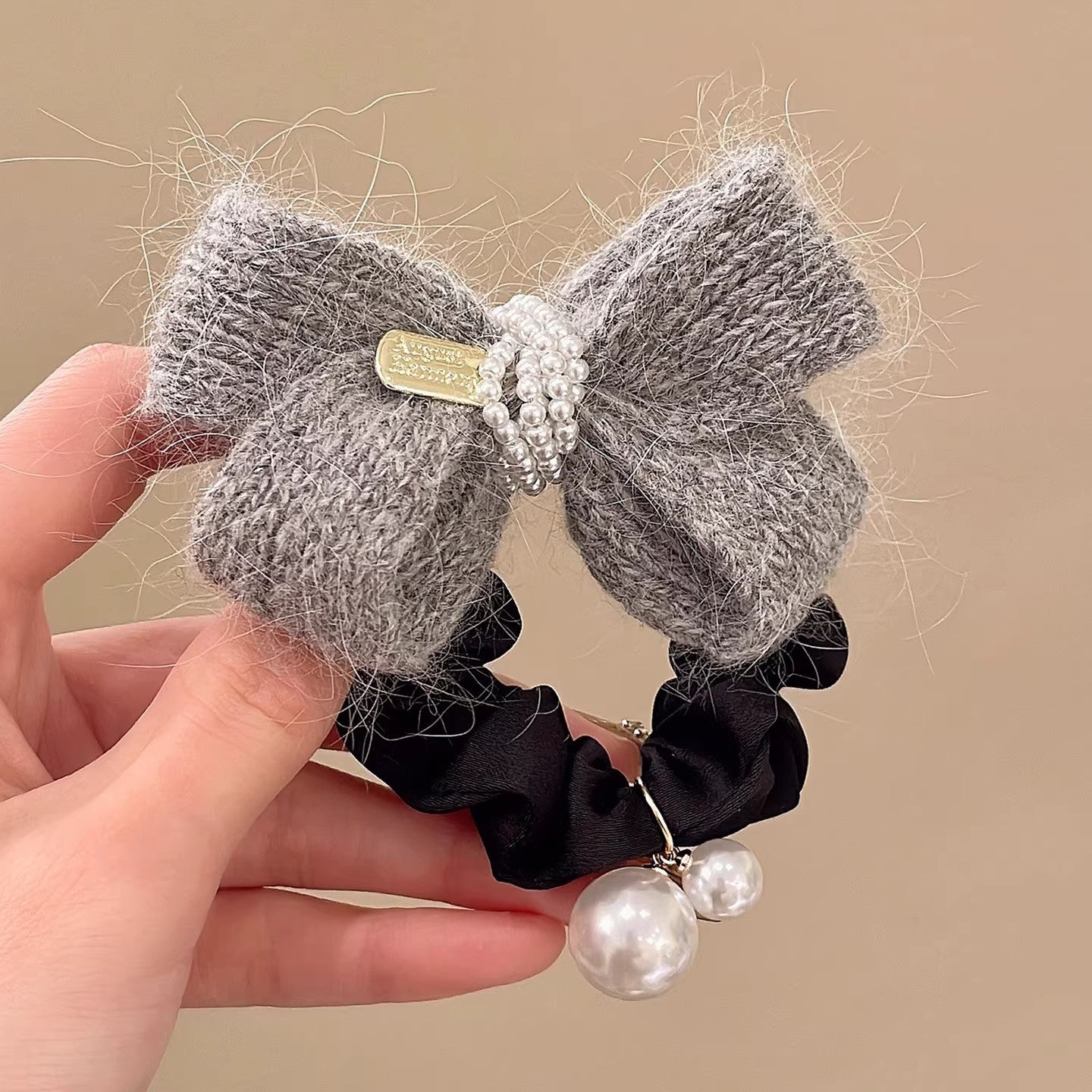 C廠【Y1072】秋冬毛線蝴蝶結針織髮圈女款高級感百搭頭繩扎丸子頭馬尾髮繩頭飾 26.01-2