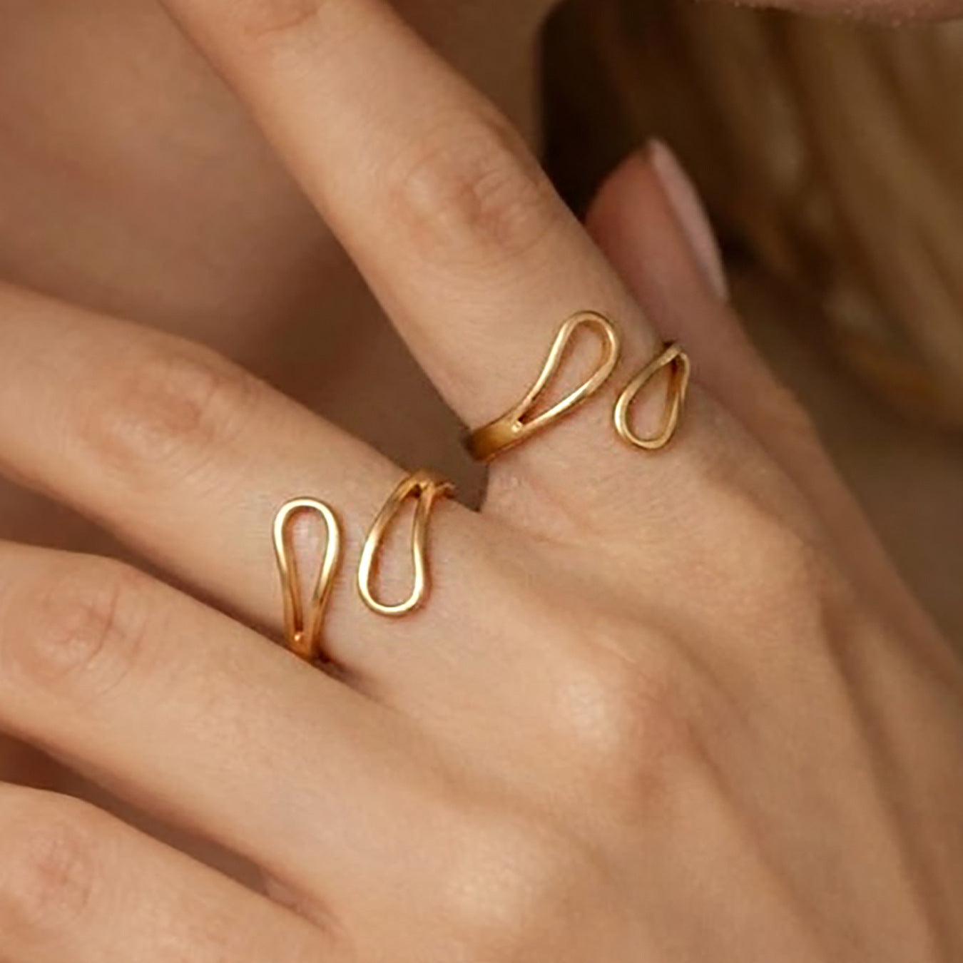 B廠【Y135】不鏽鋼鏤空交叉水滴幾何戒指 ins鍍18k金歐美百搭個性氣質食指戒 26.01-1