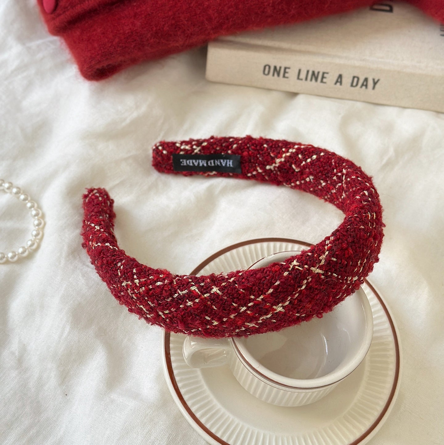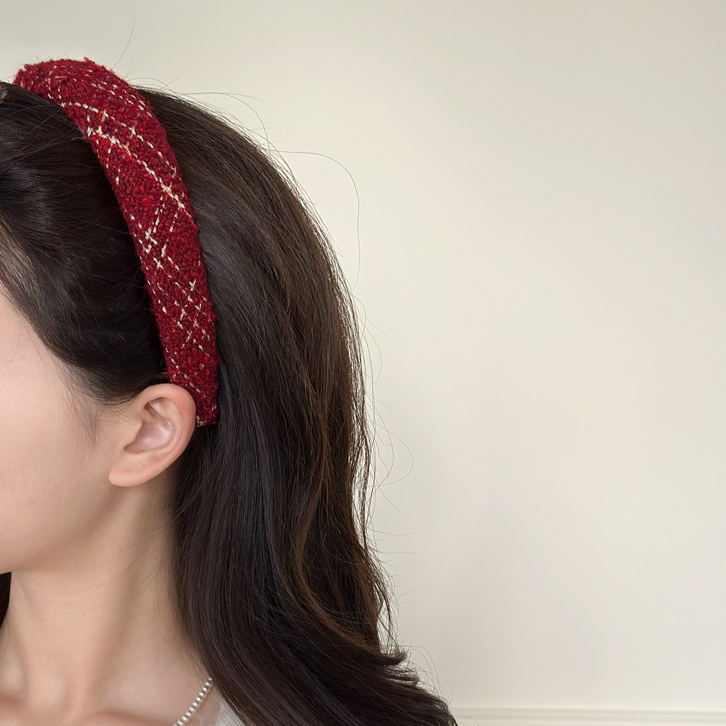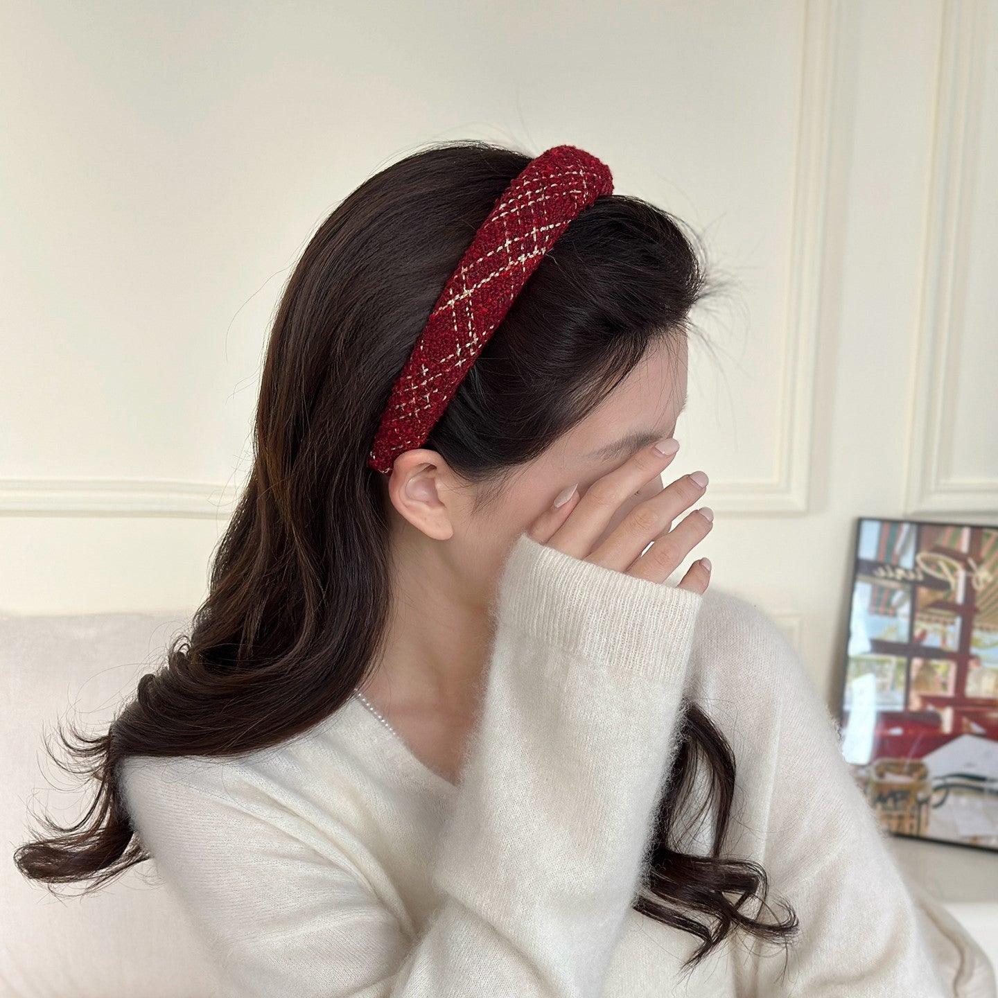 C廠【Y900】格紋紅色高顱頂海綿髮箍女秋冬外出氣質壓髮頭飾百搭髮卡新年頭箍 25.12-2「C廠-單筆結帳需滿,NT$500出貨(不含運費)」