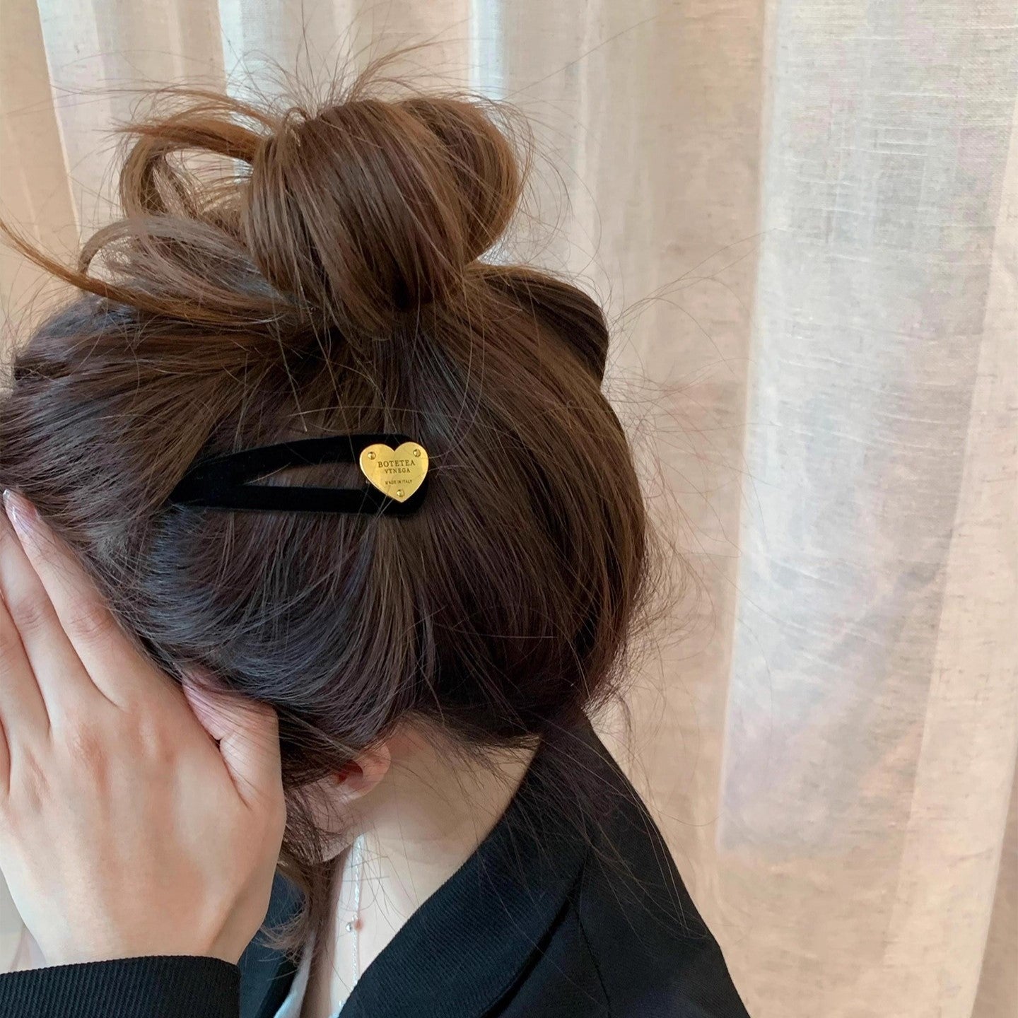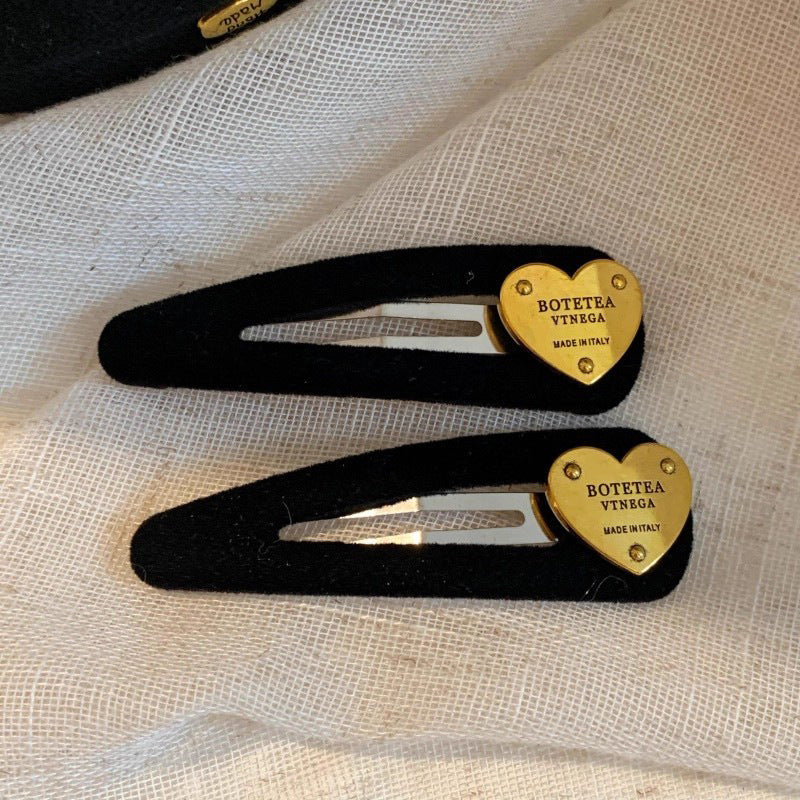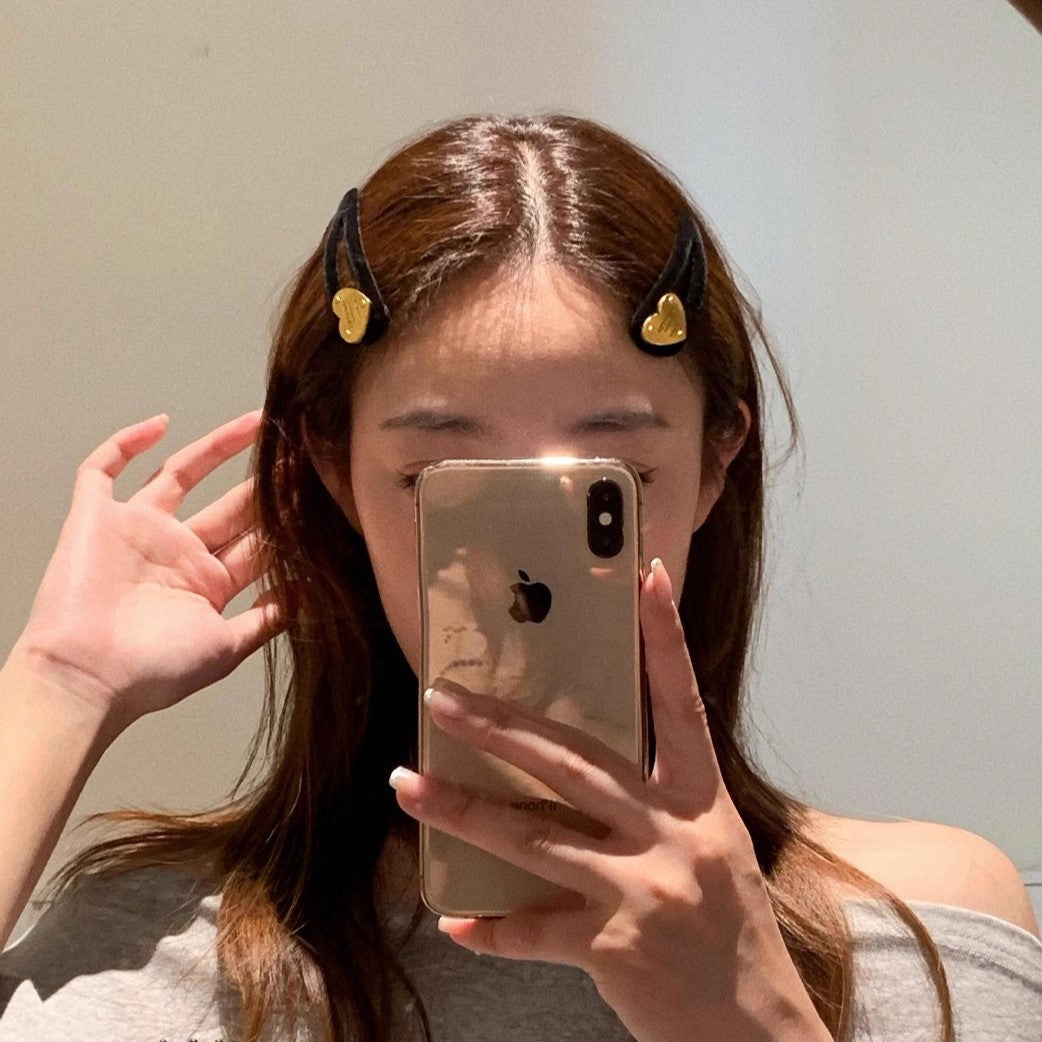 C廠【Y934】絲絨金標愛心氣質高級掰夾前額碎髮瀏海鴨嘴夾子百搭側邊夾髮飾 25.12-3「C廠-單筆結帳需滿,NT$500出貨(不含運費)」