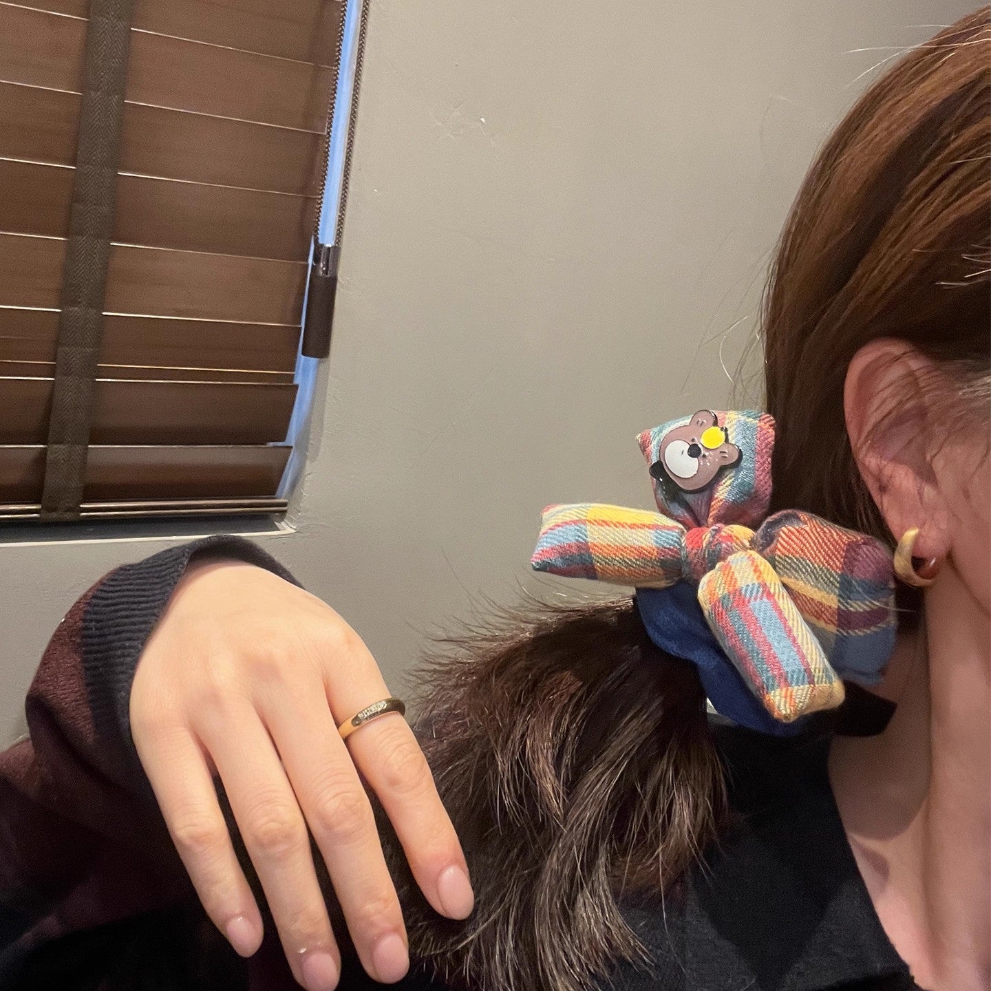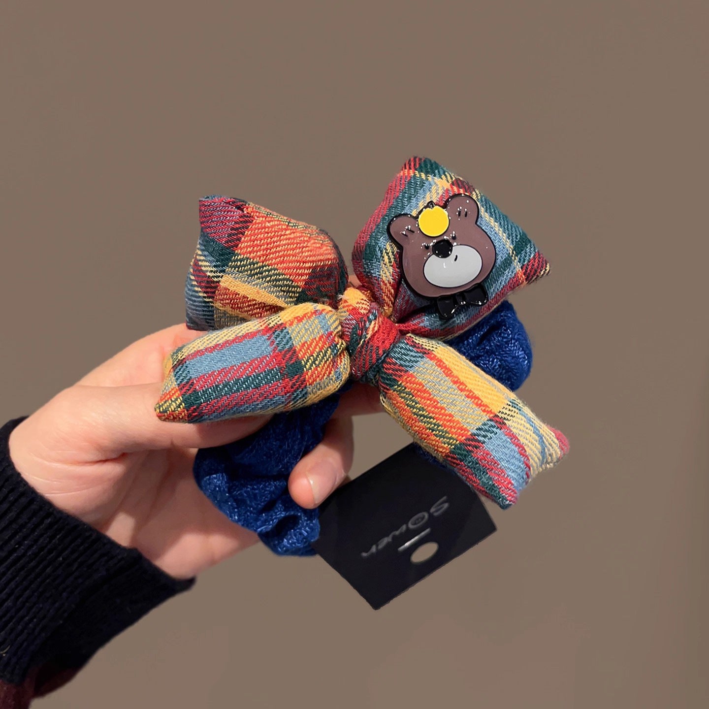 C廠【Y979】韓系百搭時尚蝴蝶結髮圈混色格紋髮繩藍色針織腸圈秋冬新款頭繩女 25.12-4「C廠-單筆結帳需滿,NT$500出貨(不含運費)」