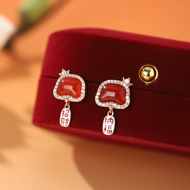 E廠【YC0077N】原創S925純銀巳蛇項鍊/手鍊/耳環紅色本命年送閨蜜手飾 24.10-1