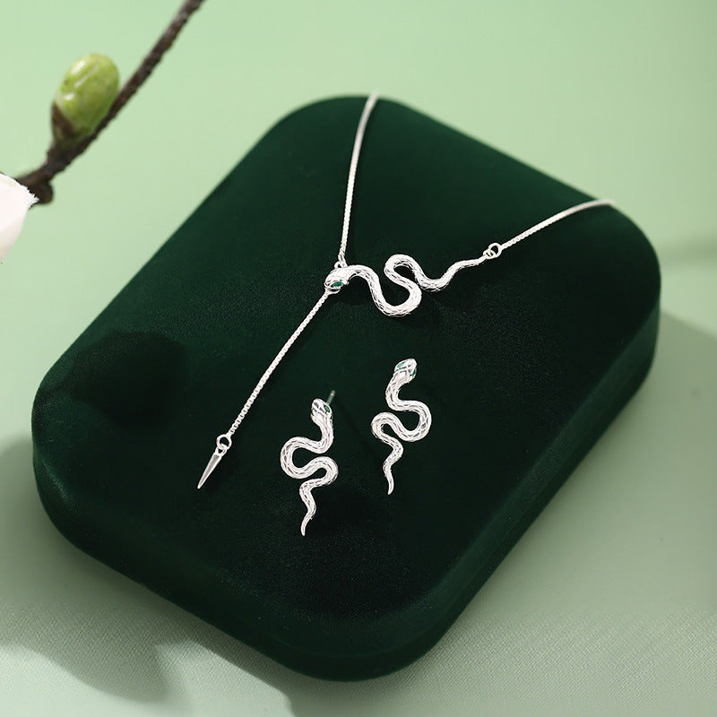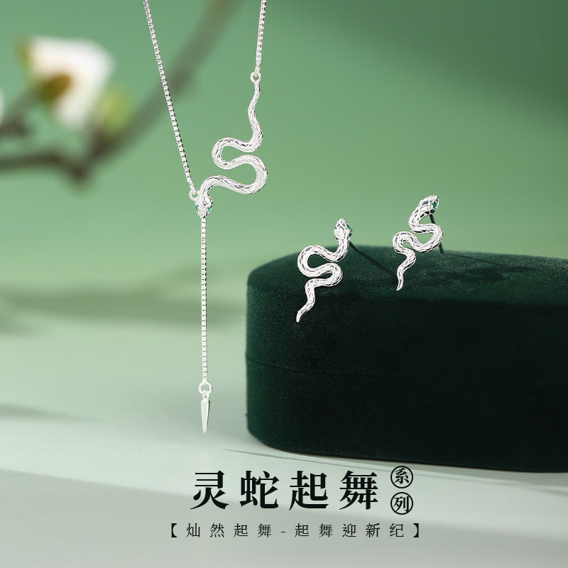 E廠【YC0107N】S925純銀原創靈蛇起舞項鍊耳環套組女蛇年本命年新年套裝 24.10-4