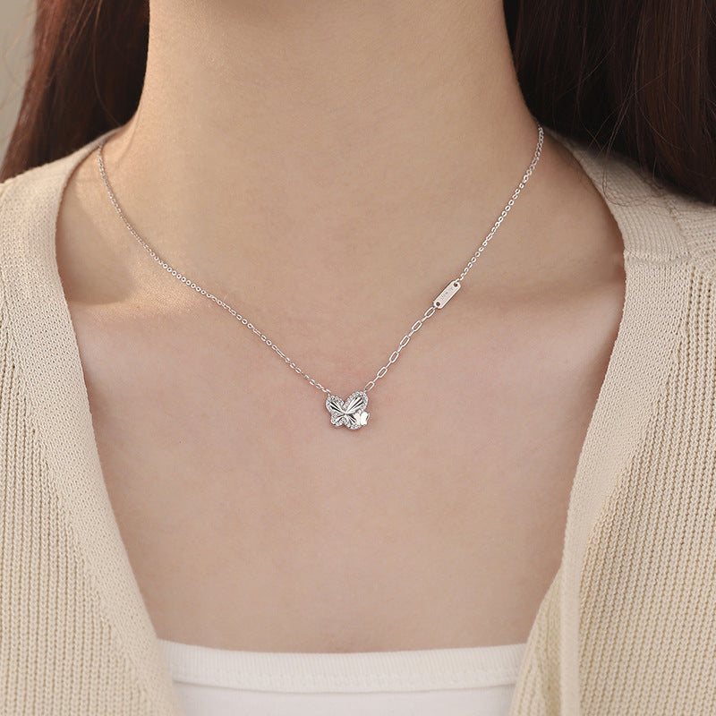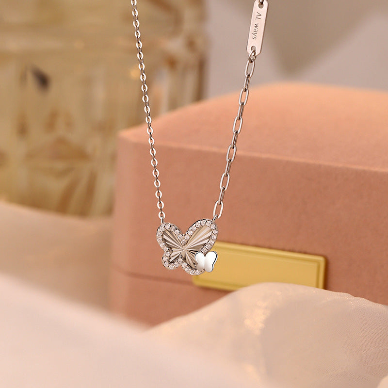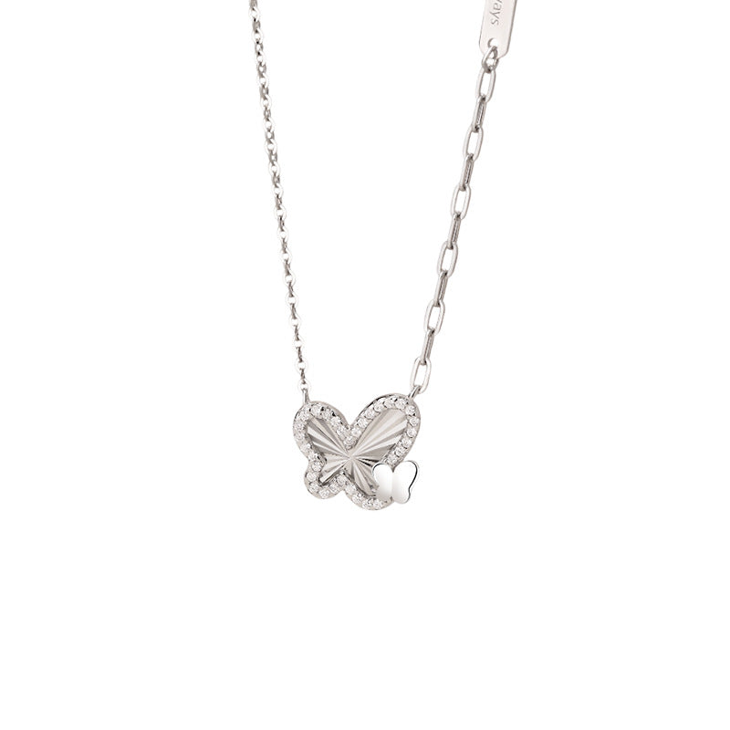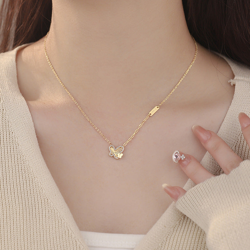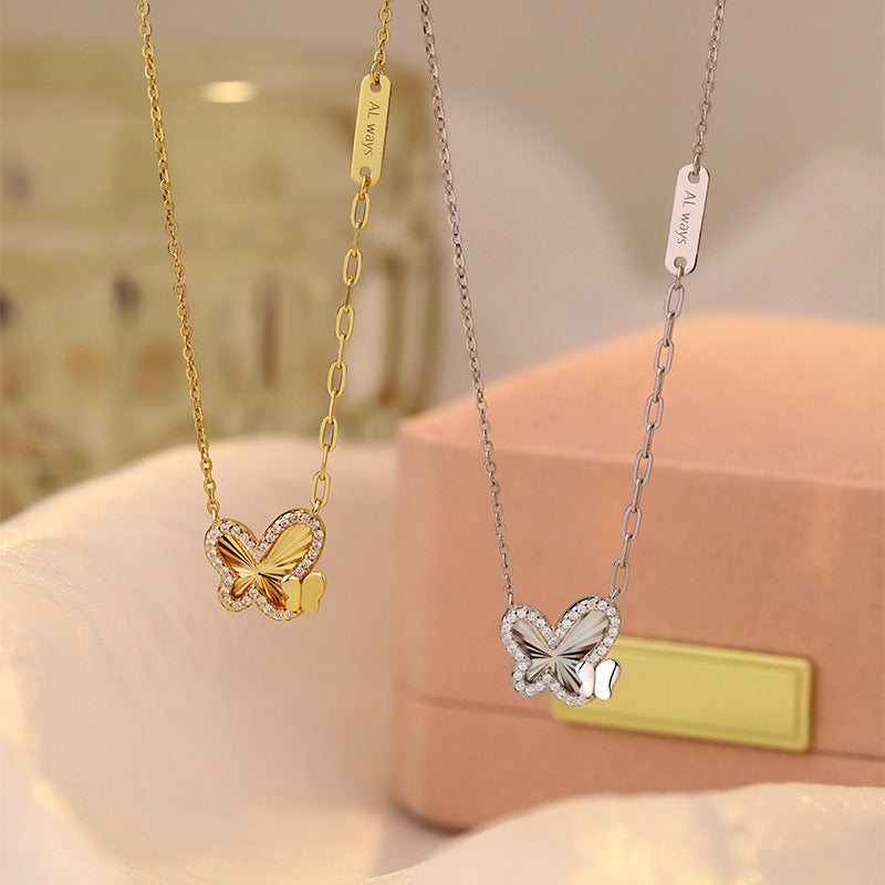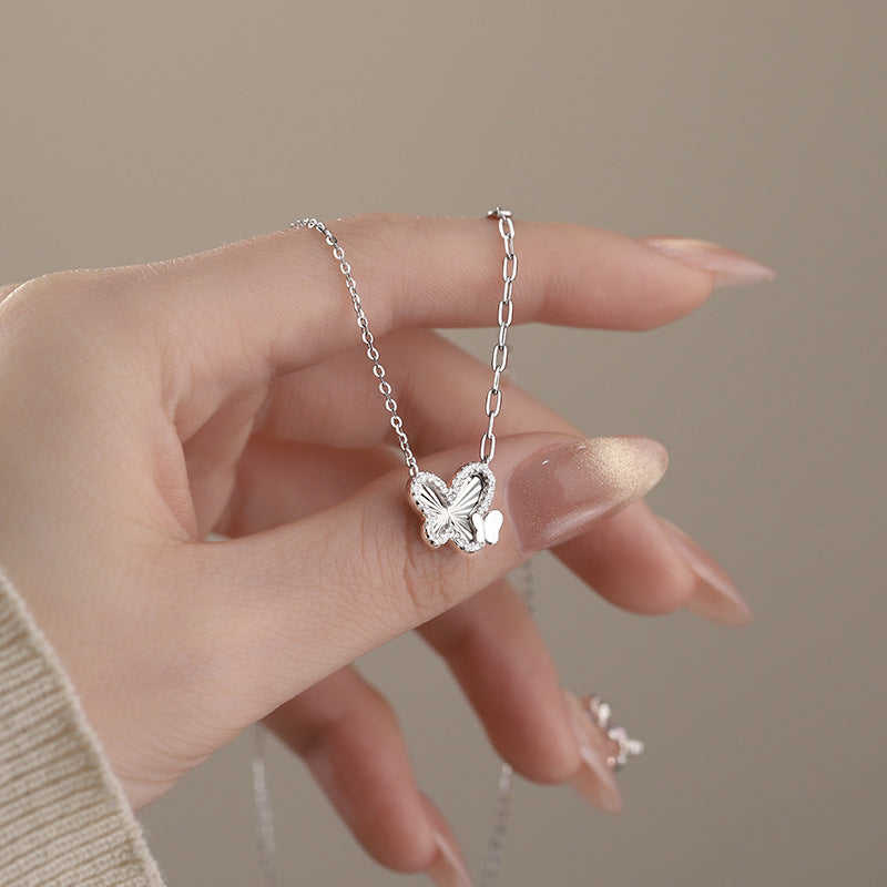 E廠【YC0198N】S925純銀田園風雙蝴蝶項鍊女簡約輕奢個性超閃韓版韓式鎖骨鏈 25.03-2