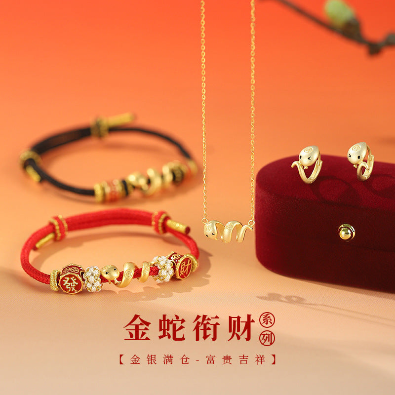 E廠【YC0208N】原創S925純銀巳蛇本命年項鍊/手鍊/耳扣三件套耳飾鎖骨鏈 24.10-1