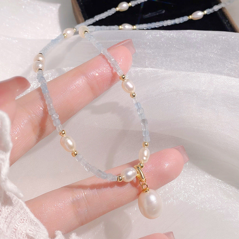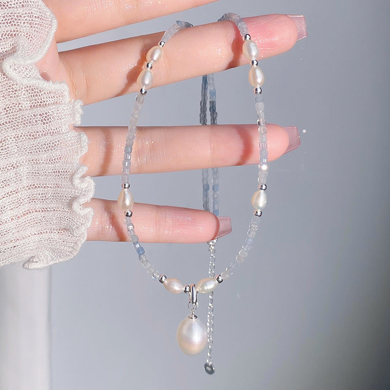 E廠【YC0249N】S925純銀珍珠藍珠項鍊簡約設計感小眾清新甜美風鎖骨鏈 24.10-4