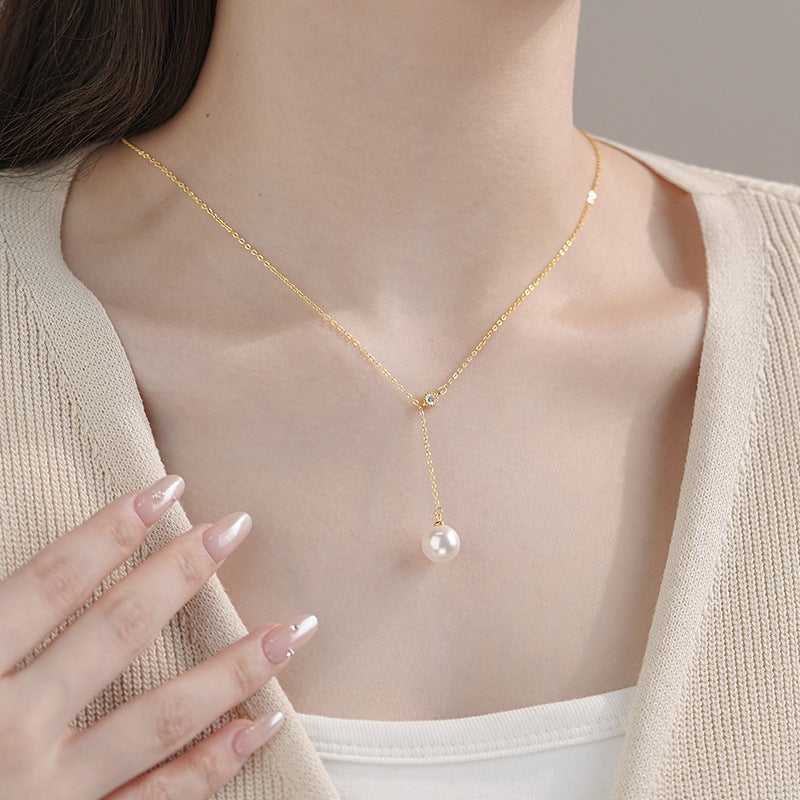 E廠【YC0277N】S925純銀珍珠紫金砂項鍊多款式幾何簡約輕奢甜鎖骨鏈 25.03-2