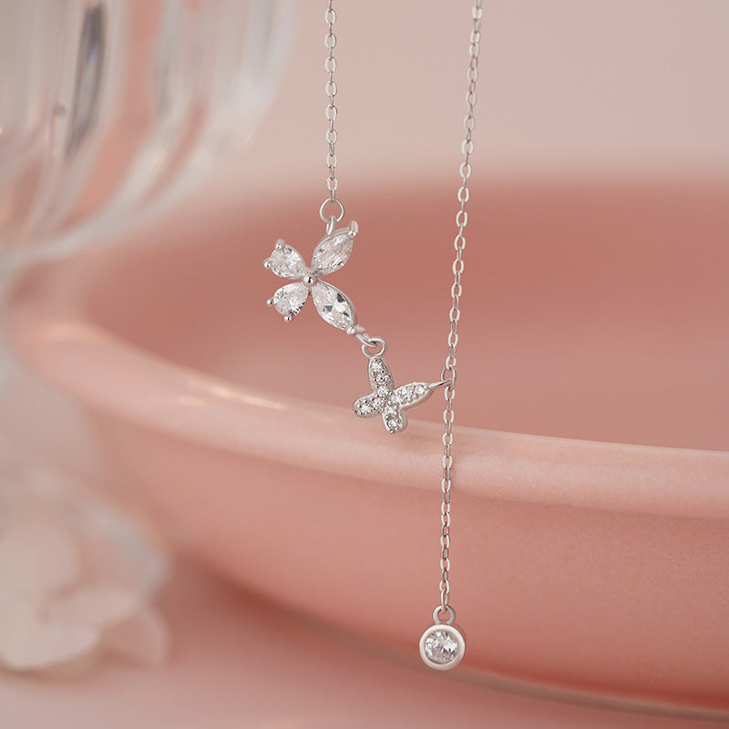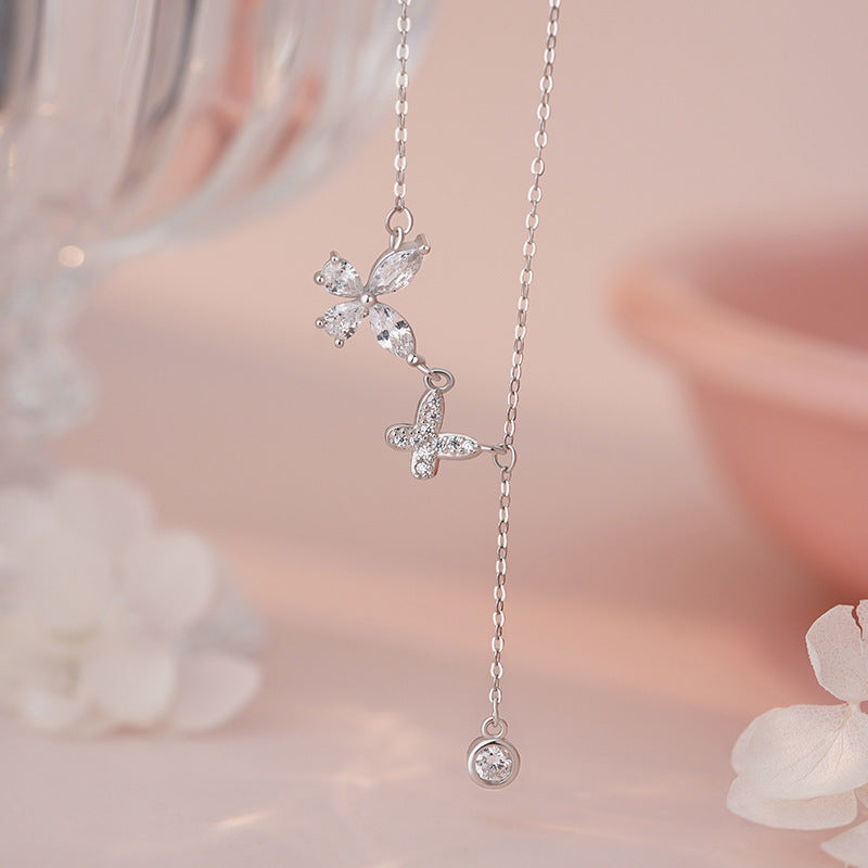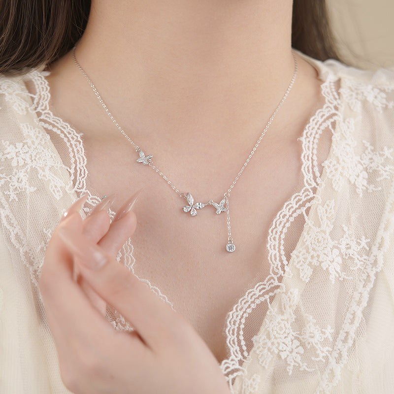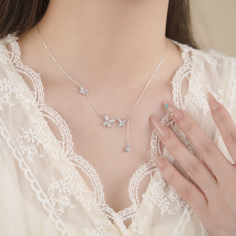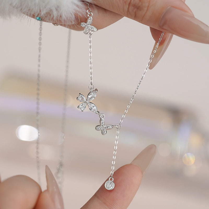 E廠【YC0374N】S999足銀蝴蝶流蘇項鍊爆閃輕奢韓風氣質精美搭配鎖骨鏈 25.06-2
