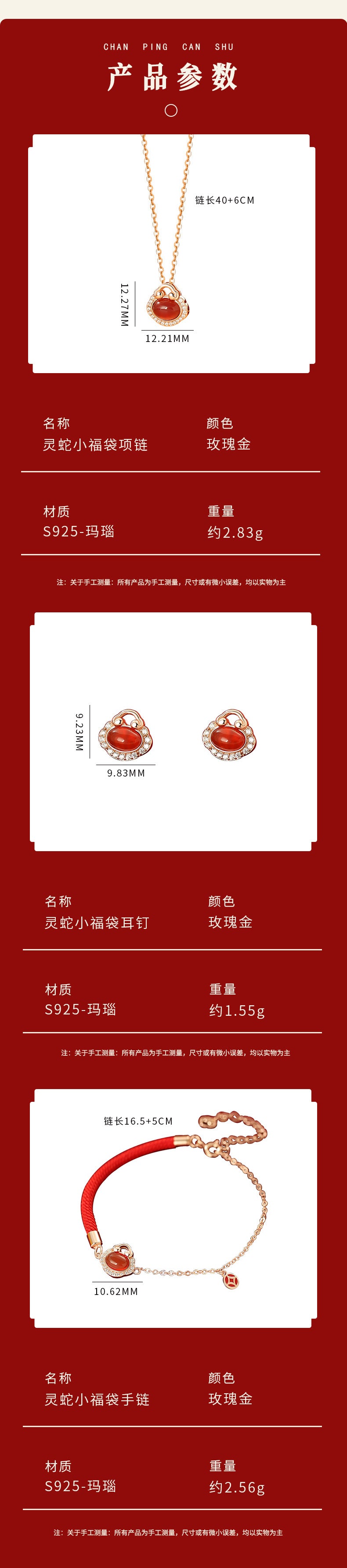 E廠【YC0389N】原創S925純銀巳蛇新年禮物靈蛇小福袋手鍊/項鍊/耳環手飾 24.10-1