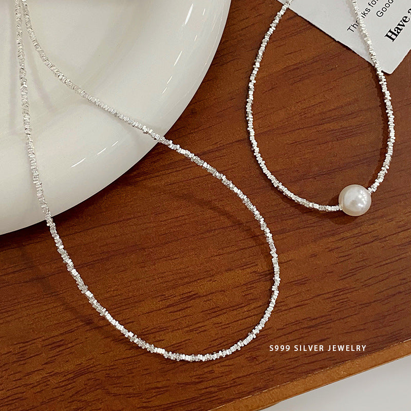 E廠【YC0471N】S999足銀碎銀子珍珠項鍊女輕奢時尚ins高級感鎖骨鏈 24.06-1