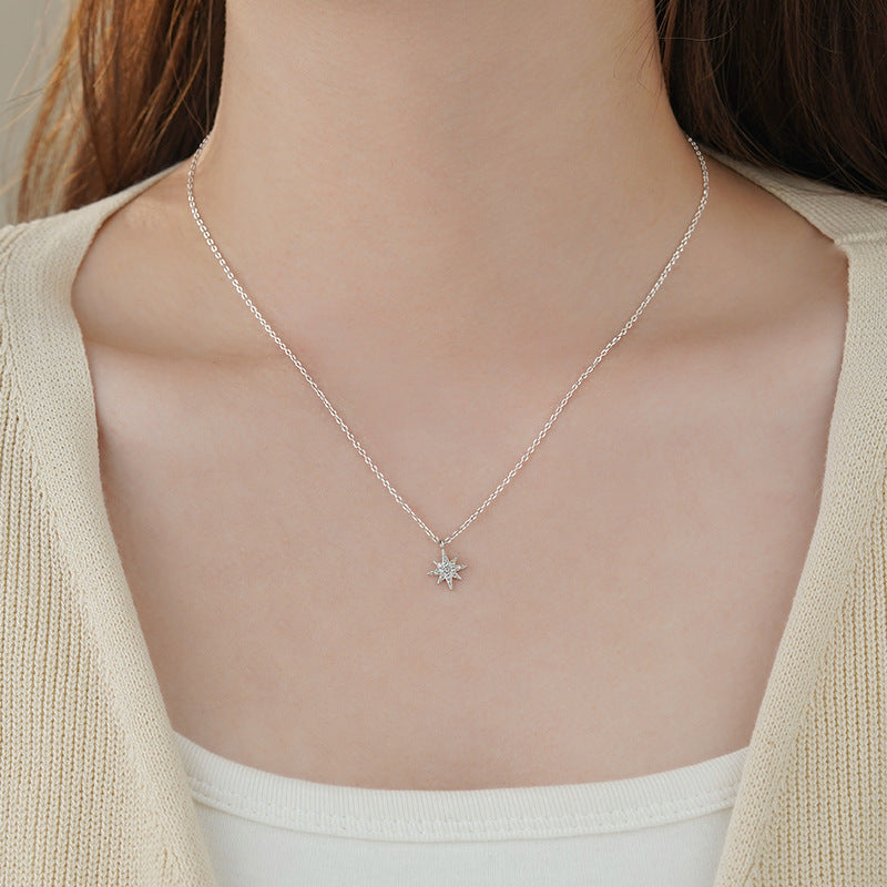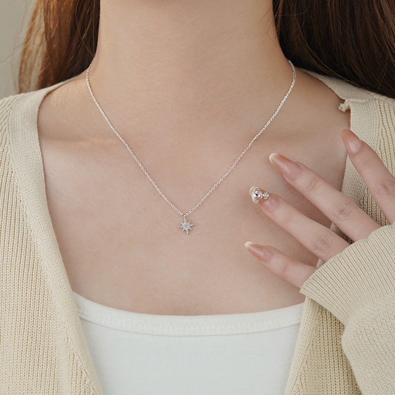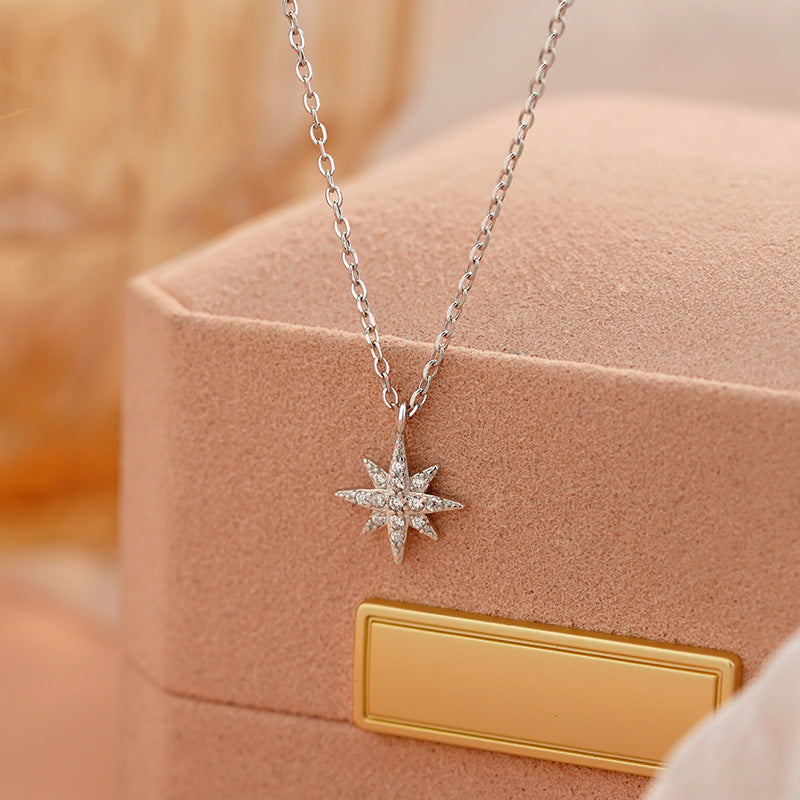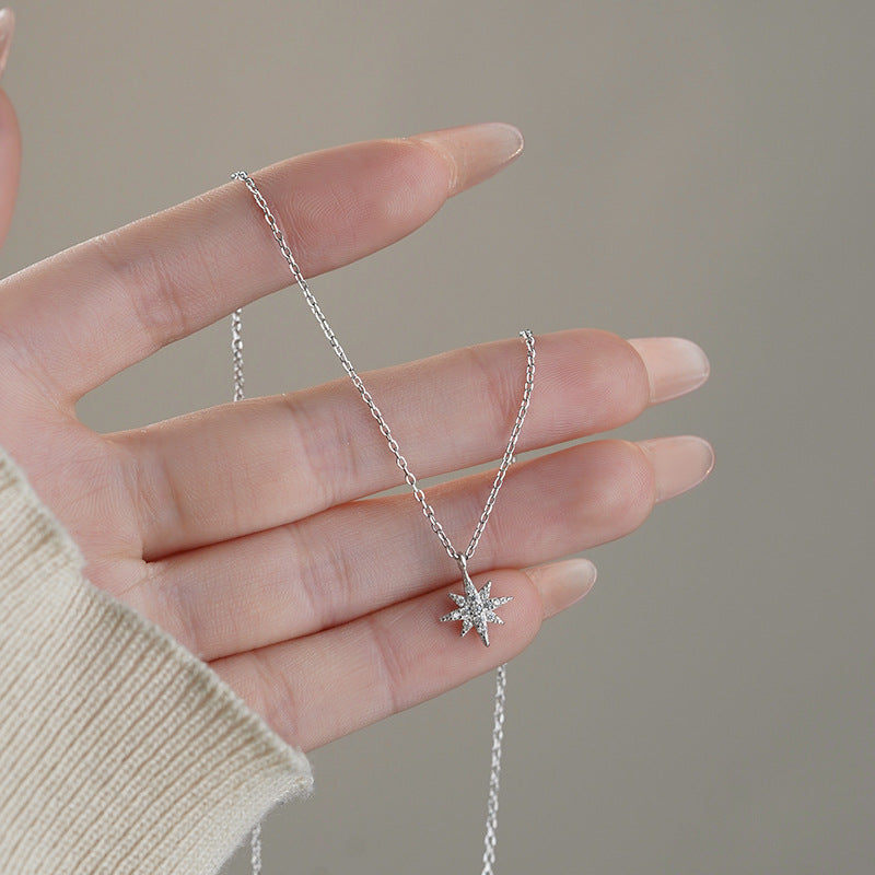 E廠【YC0971N】S925純銀輕奢八芒星項鍊女甜美溫柔小眾設計感高級感鎖骨鏈 25.03-2