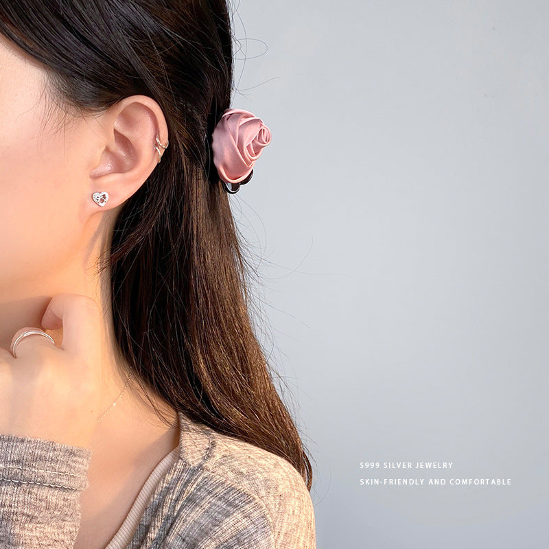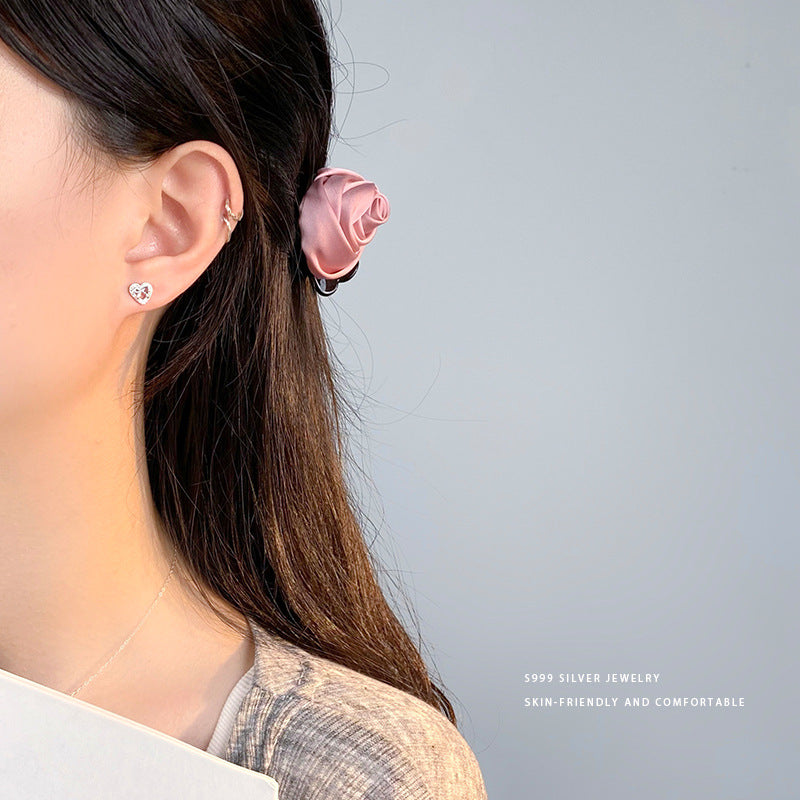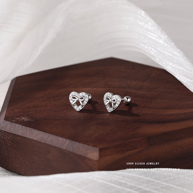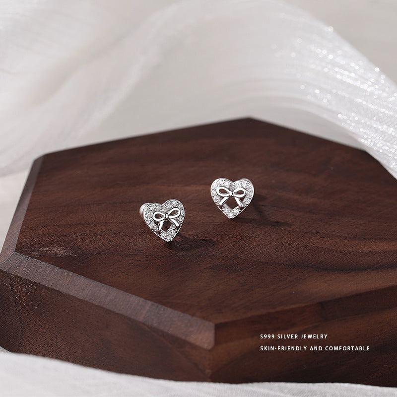 E廠【YC10006E】S999足銀甜美鑲鑽愛心蝴蝶結耳環女小眾設計感小禮物耳飾 24.05-5