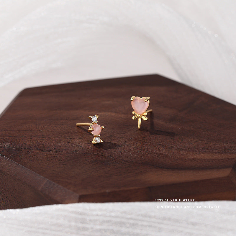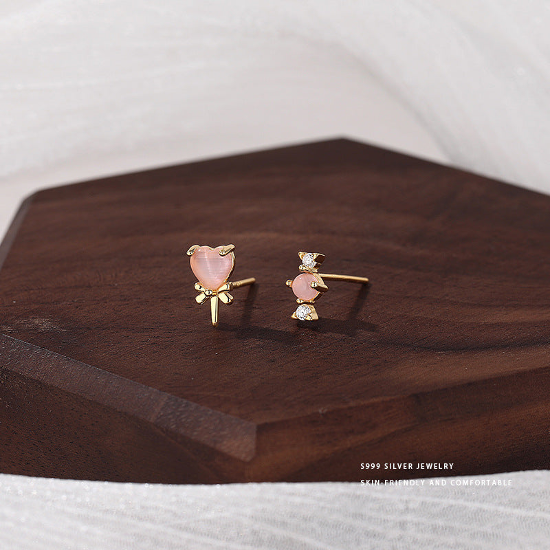 E廠【YC10022E】S999足銀甜美愛心棒棒糖耳環女蝴蝶結糖果可愛時尚不對稱耳飾 24.05-4