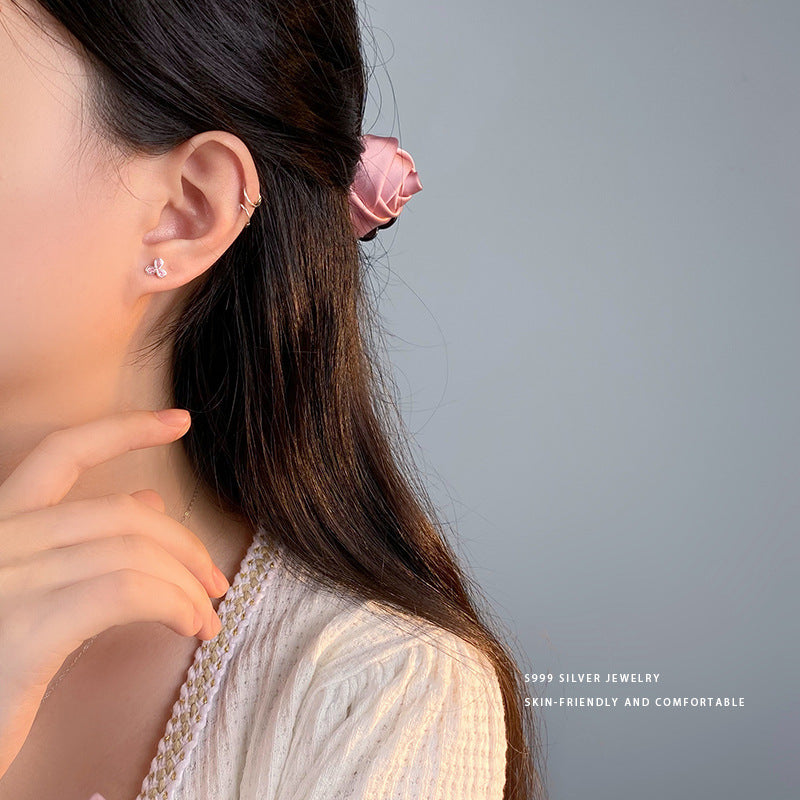 E廠【YC10026E】S999足銀甜美粉鑽三葉花螺絲耳環女小眾設計感免摘防掉耳飾品 24.05-5