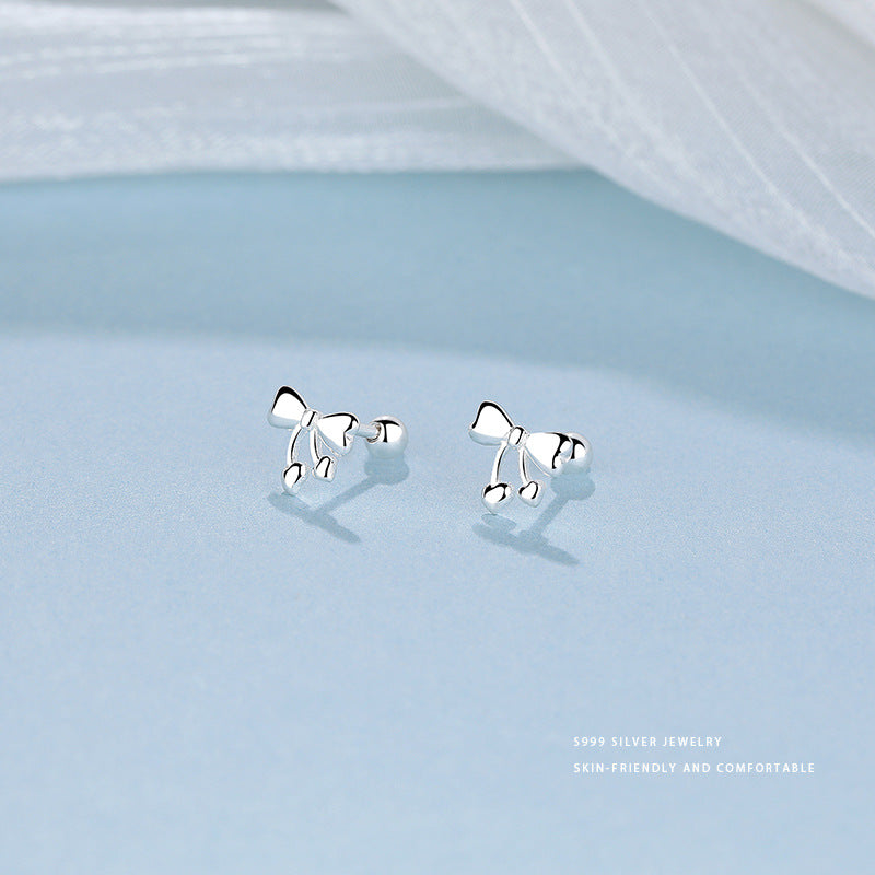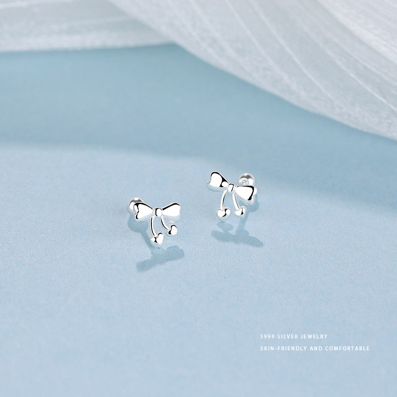 E廠【YC10035E】S925純銀可愛蝴蝶結愛心櫻桃耳環女小巧小眾設計養耳洞耳飾品 24.05-5
