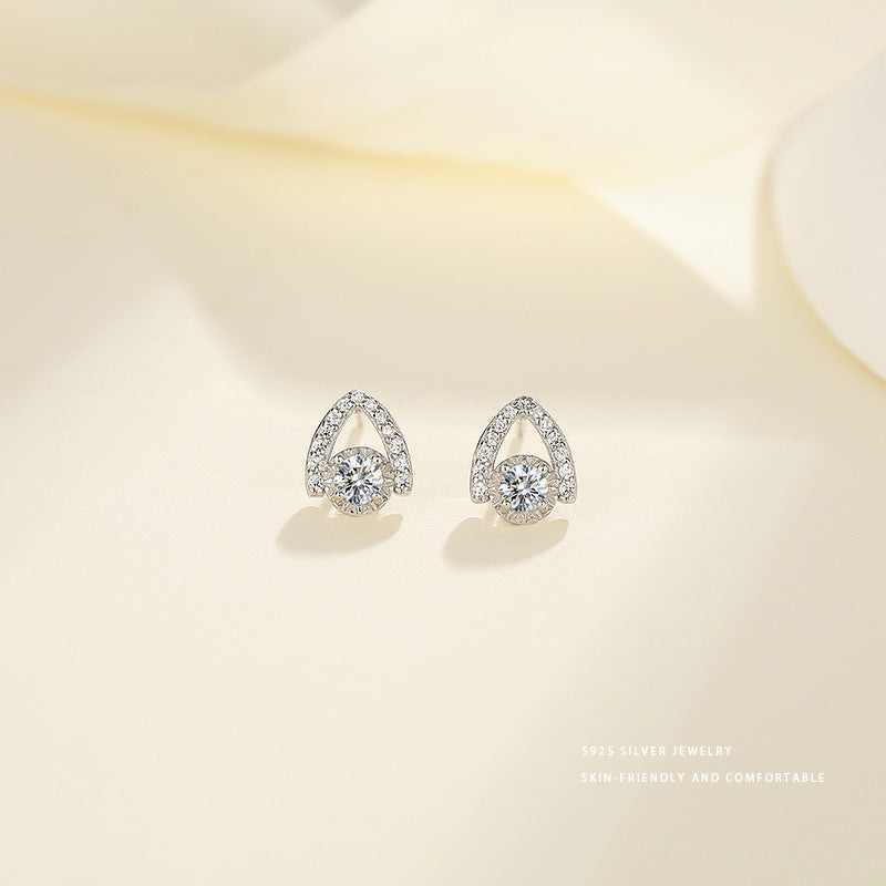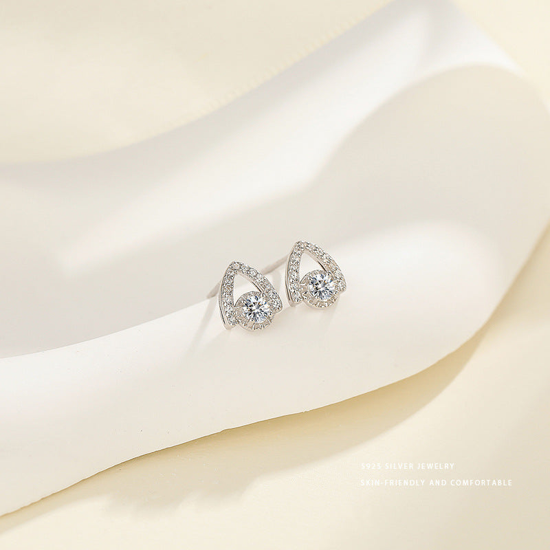 E廠【YC10052E】S925純銀精美莫桑鑽三角形耳環女高級質感爆閃輕奢耳飾品 24.05-4