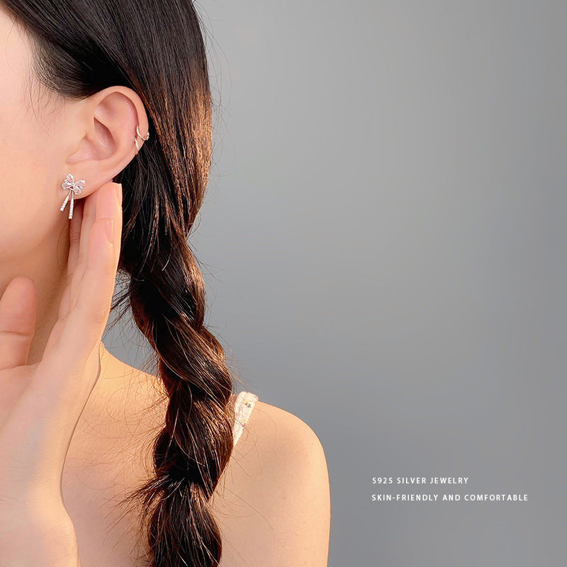 E廠【YC10054E】S925純銀個性蝴蝶結流蘇耳環女甜酷風少女感新款爆款耳飾 24.05-1