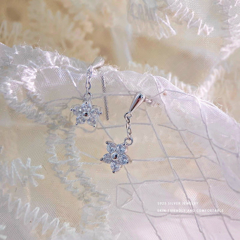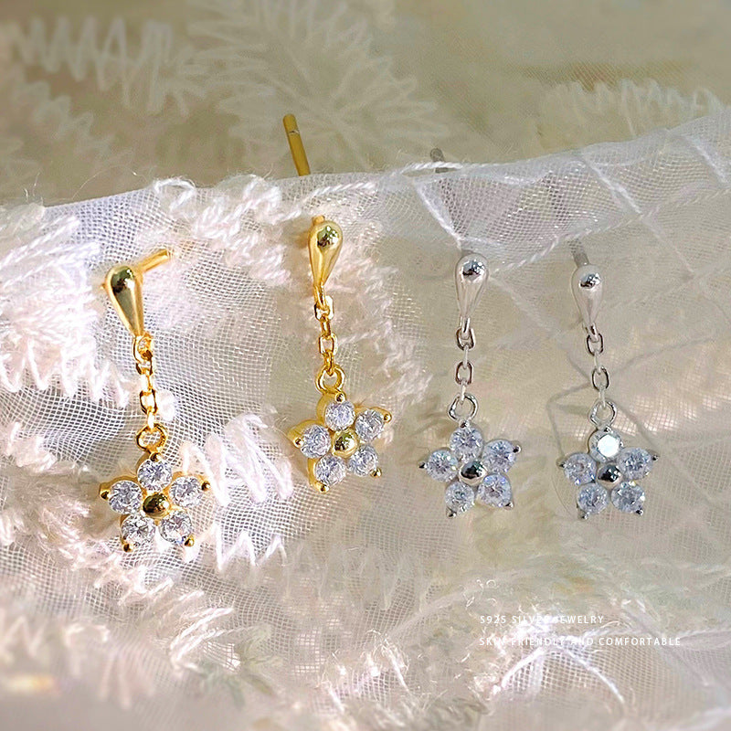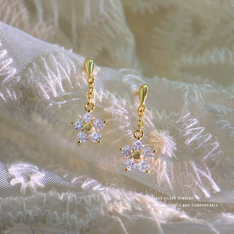 E廠【YC10057E】S925純銀小巧水滴花朵耳環女輕奢精美流蘇耳環新款耳飾品 24.05-1