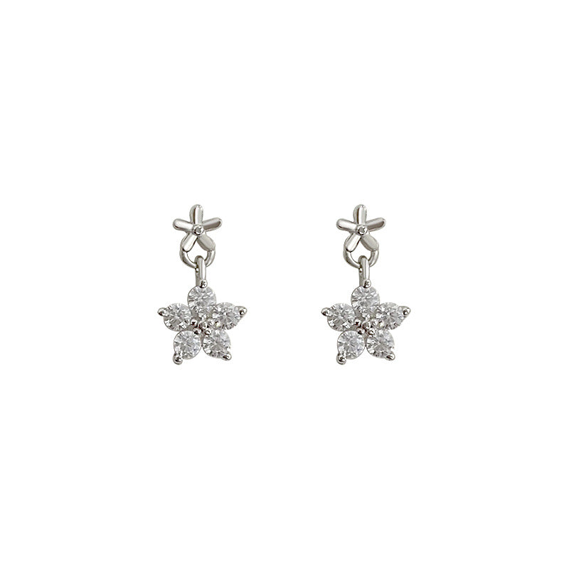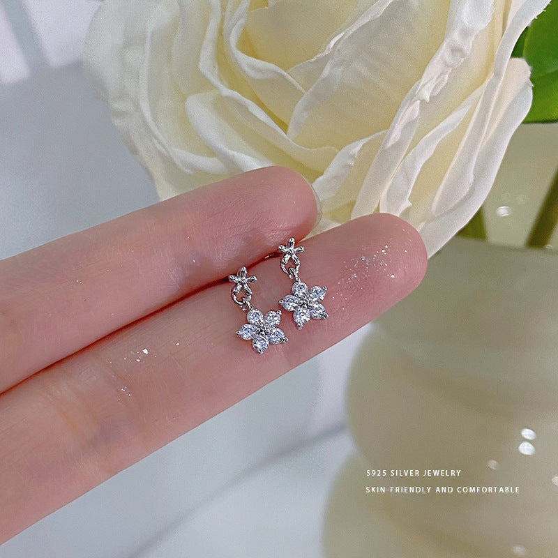 E廠【YC10063E】S925純銀精美鋯石花朵耳環女小清新夏日新款百搭耳環耳環 24.05-1