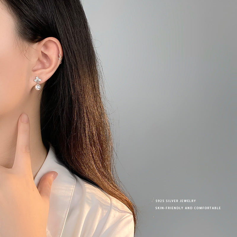 E廠【YC10091E】S925純銀輕奢葉子珍珠耳環女法式小眾設計感精緻氣質耳環 24.05-5