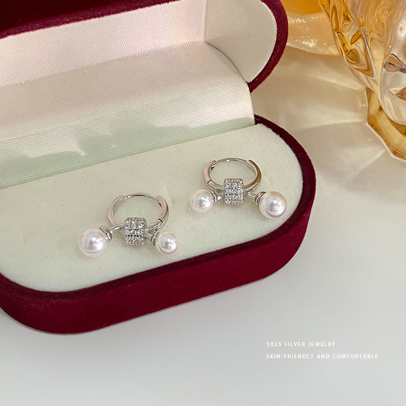E廠【YC10094E】S925純銀輕奢鑲鑽珍珠耳扣女新款小眾設計感氣質耳環耳圈耳飾 24.05-5
