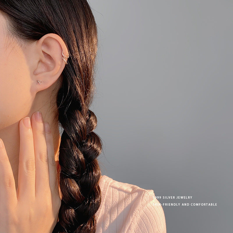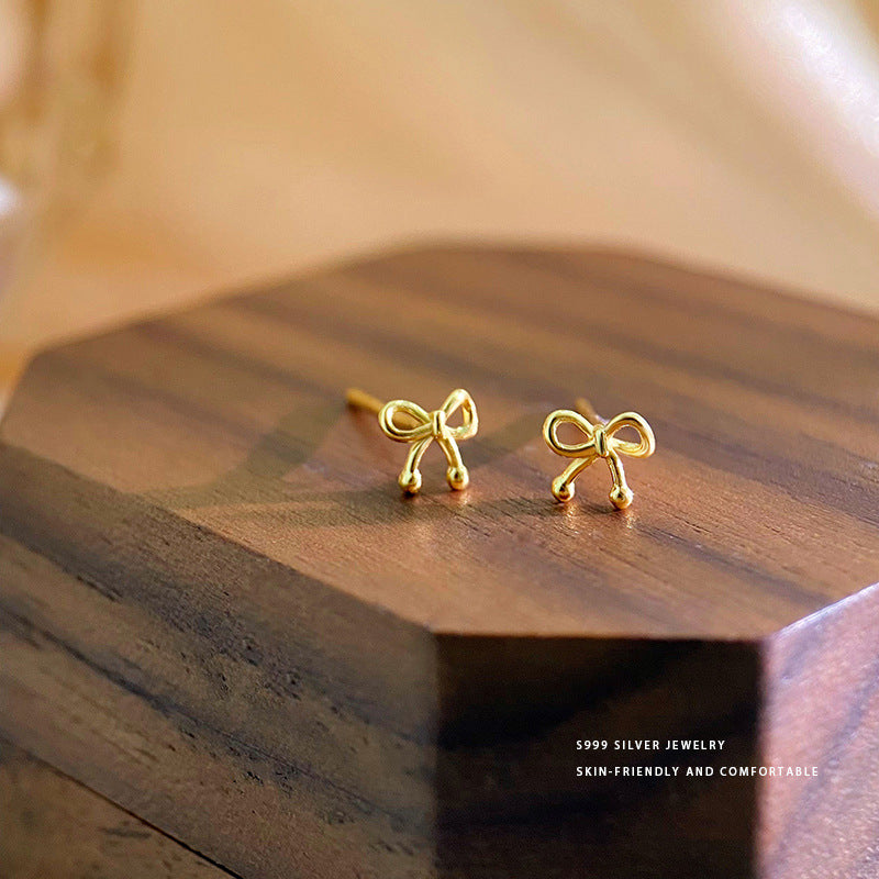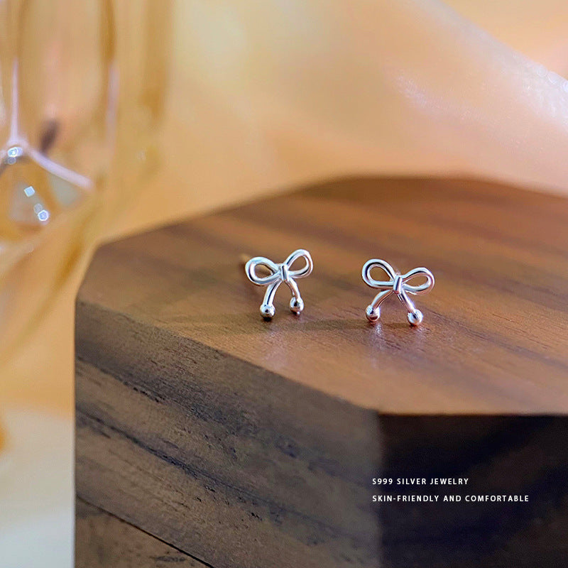 E廠【YC10113E】S999足銀可愛圓珠蝴蝶結耳環女小眾設計感新款養耳洞學生耳飾 24.05-5