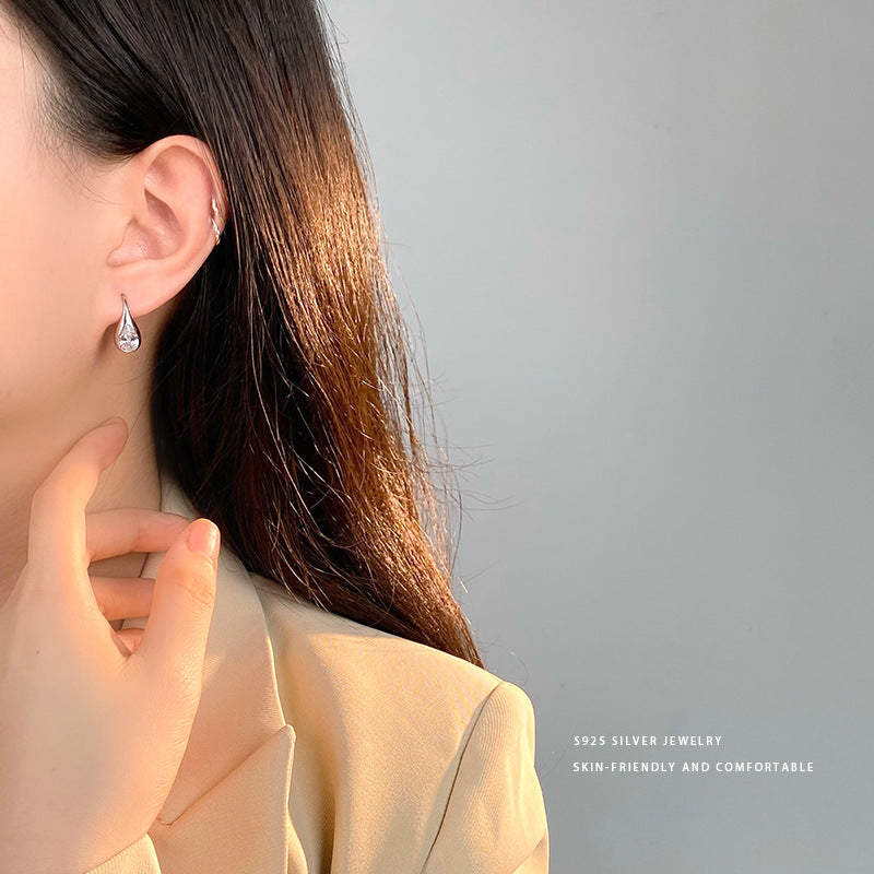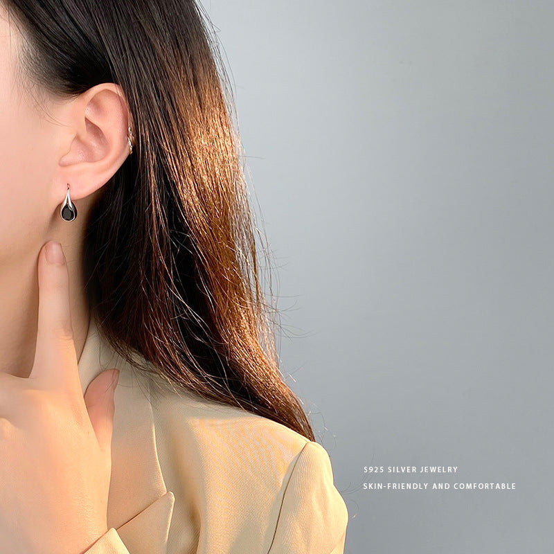 E廠【YC10116E】S925純銀個性黑白鋯石水滴耳環女ins冷淡風時尚新款耳環 24.05-5