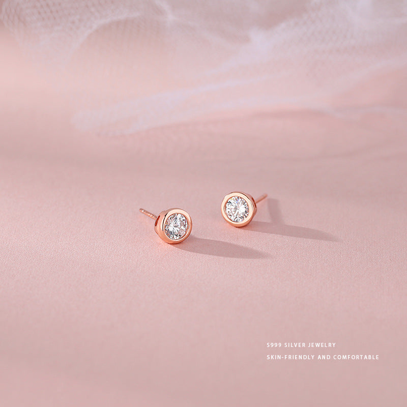 E廠【YC10123E】S999足銀簡約圓形愛心鋯石耳環女小眾輕奢氣質設計感耳骨 24.05-5