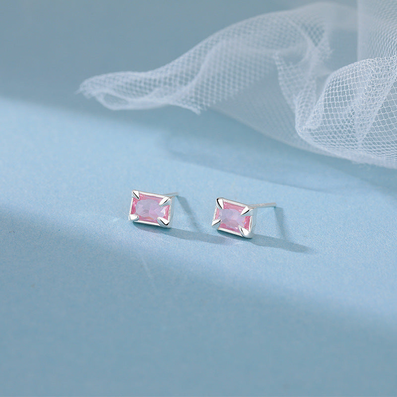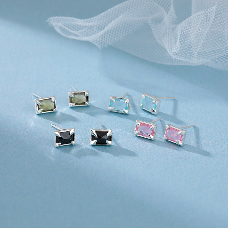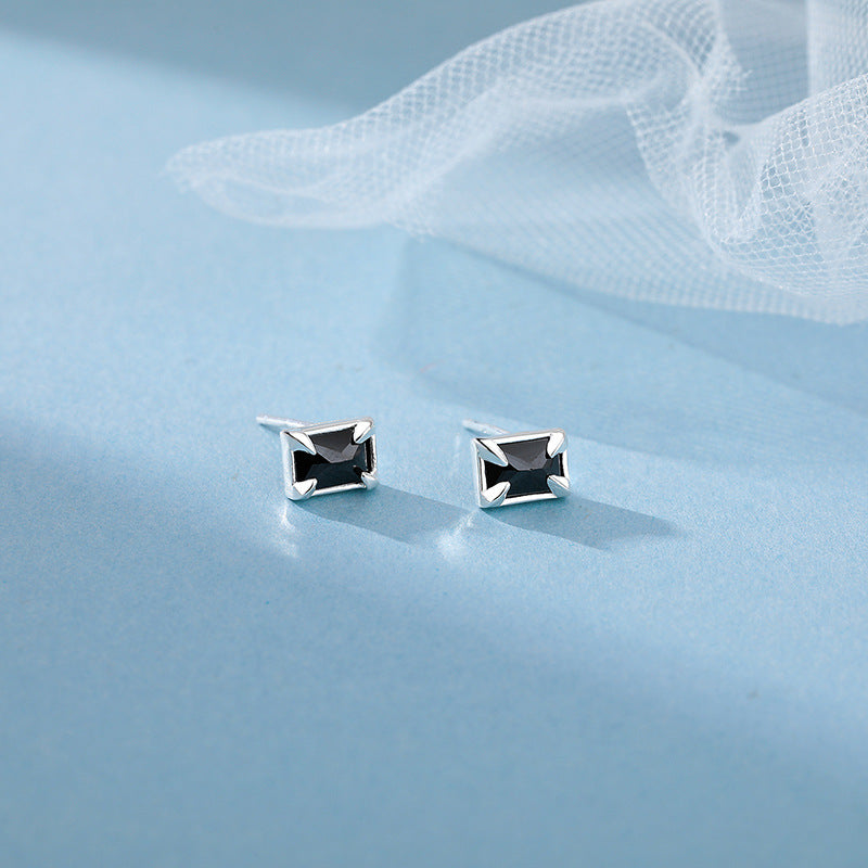 E廠【YC10125E】S999足銀簡約方形鋯石耳骨釘百搭學生小眾養耳洞耳環女 24.07-1