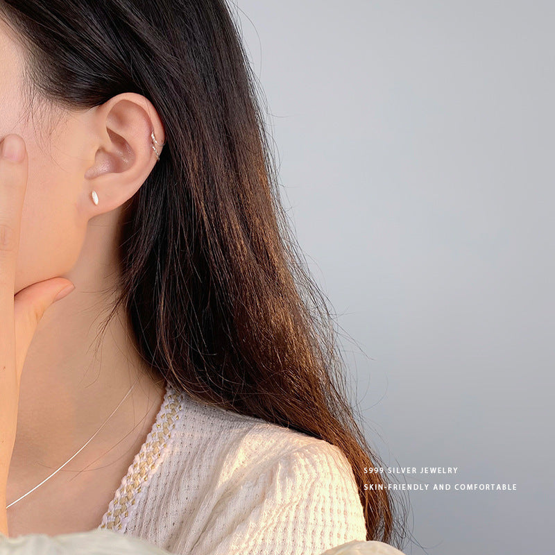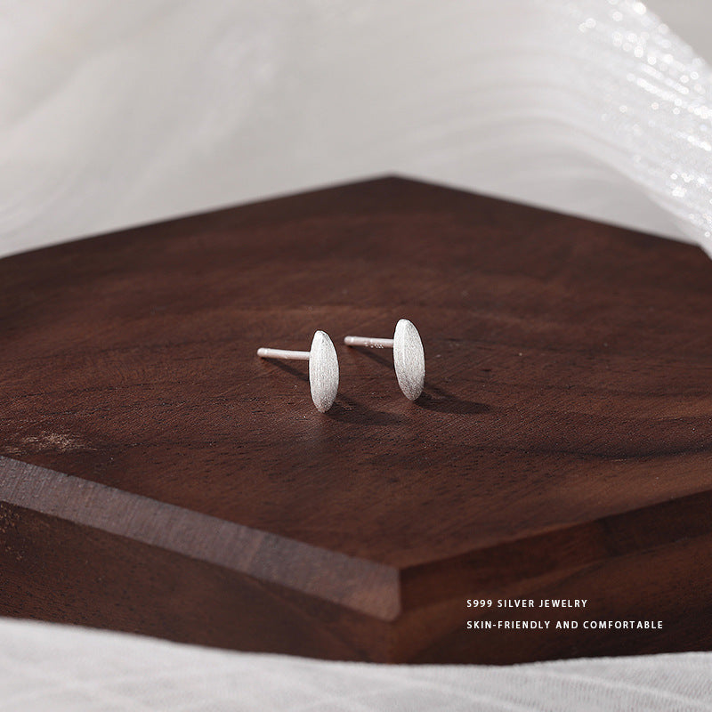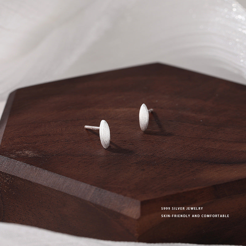 E廠【YC10127E】S999足銀簡約拉絲橢圓形耳環女小巧新款耳骨釘個性冷淡風耳飾品 24.05-4