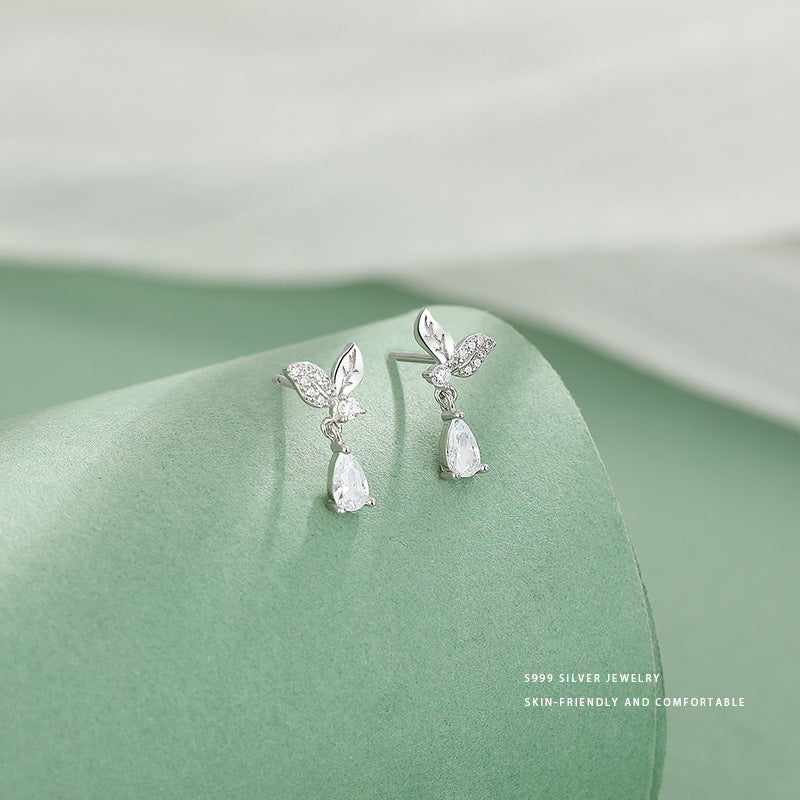 E廠【YC10129E】S999足銀輕奢葉子水滴耳環女新款小眾耳環 24.05-4