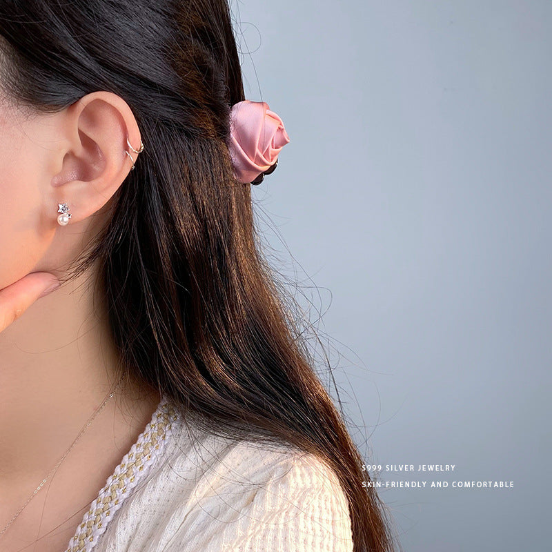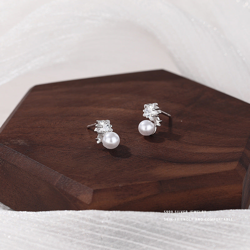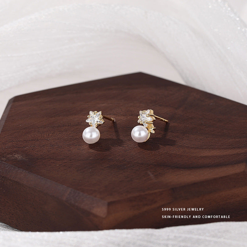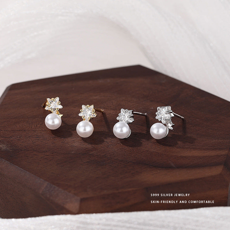 E廠【YC10139E】S999足銀甜酷鋯石星星珍珠耳環女款精緻耳環小巧個性耳飾 24.05-4