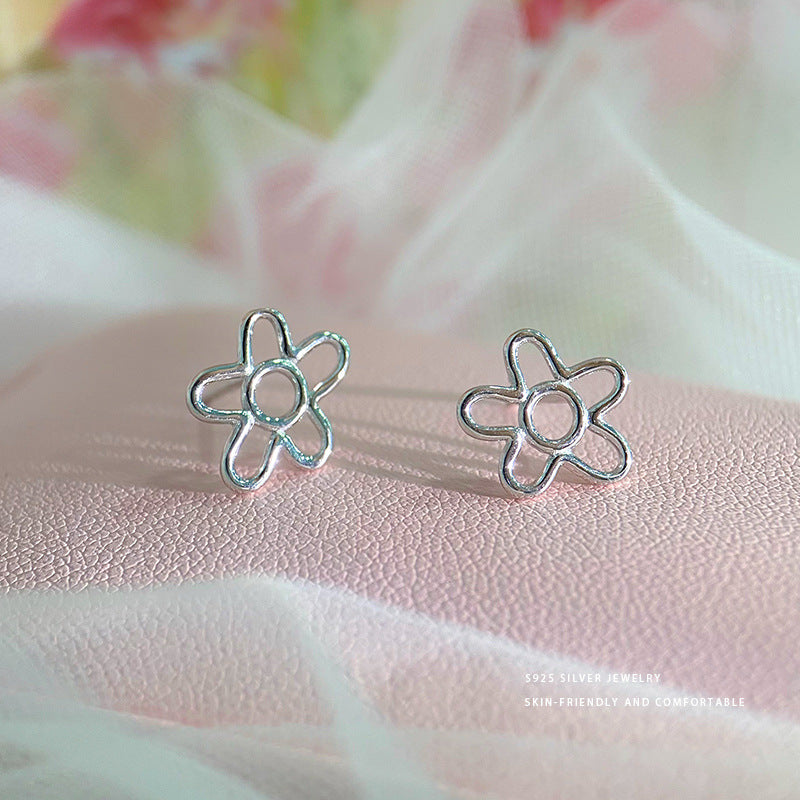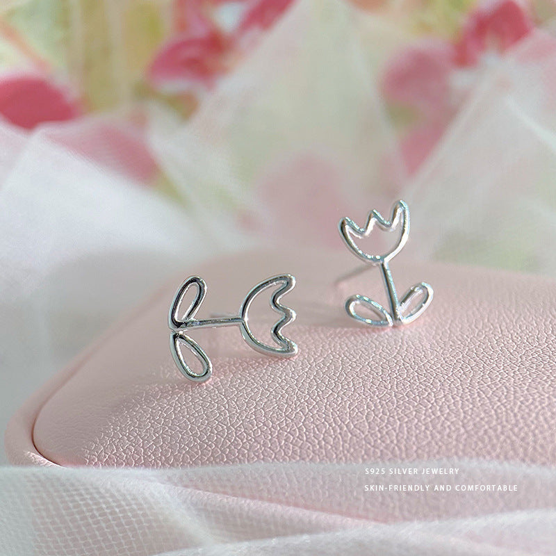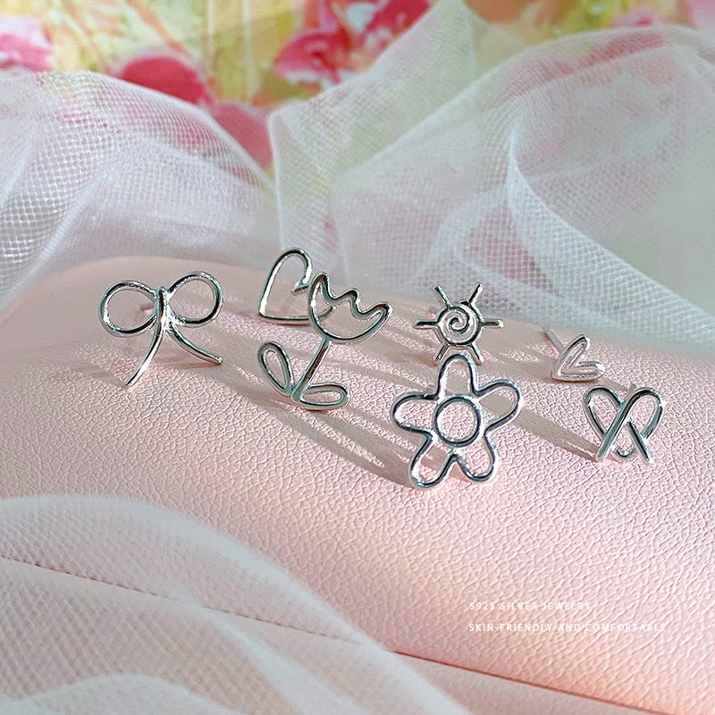 E廠【YC10150E】S925純銀簡約繞線鬱金香花朵蝴蝶結愛心耳環疊搭少女耳飾 24.05-5