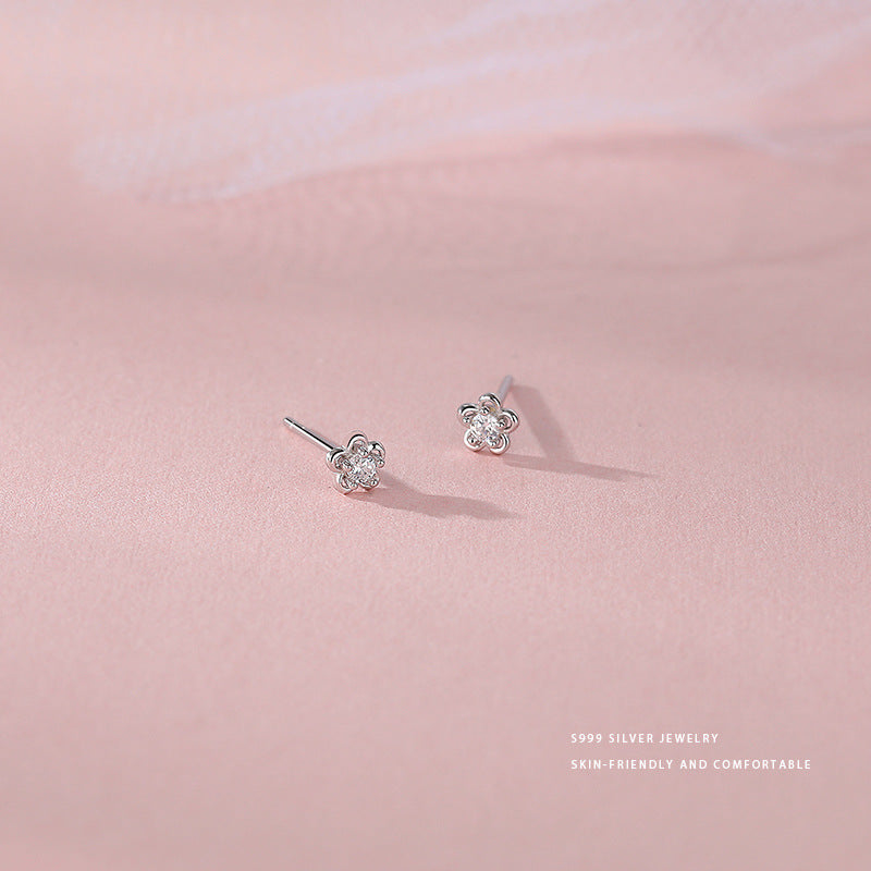 E廠【YC10178E】S999足銀精緻鋯石小花耳環女款小巧百搭日常耳環耳環春夏耳飾 24.05-5