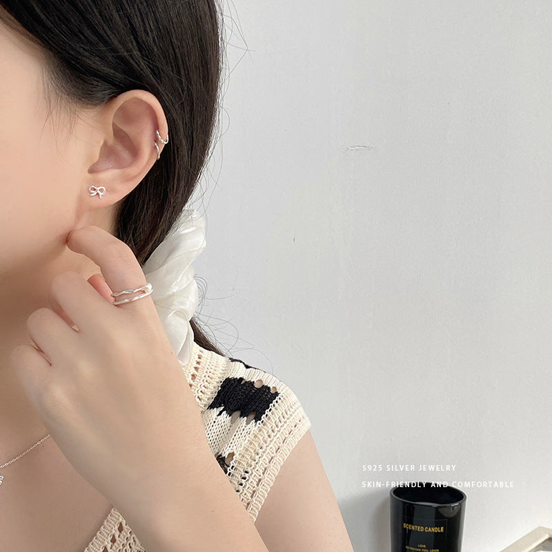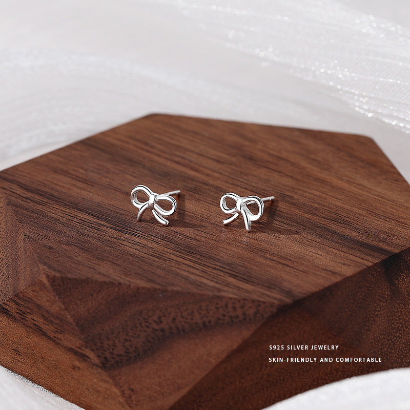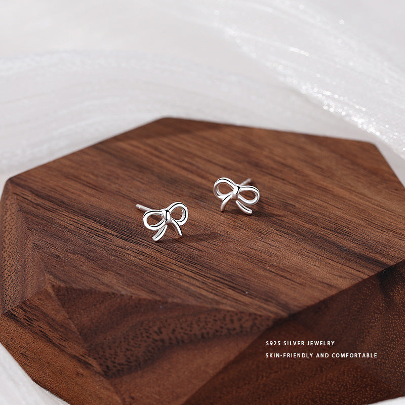 E廠【YC10183E】S925純銀可愛蝴蝶結耳環女精緻森系吸睛耳環法式耳飾養耳洞 24.05-5