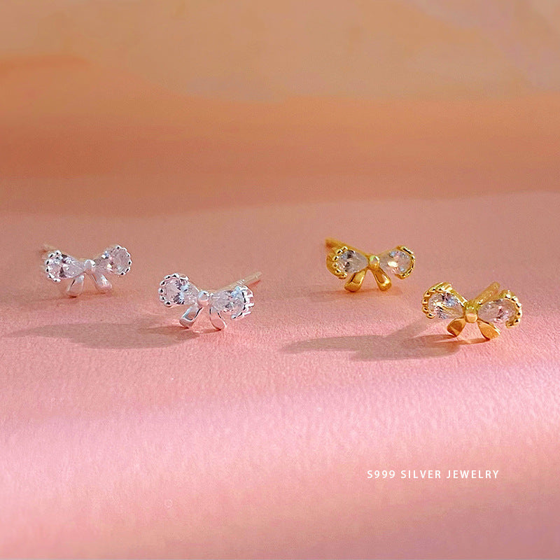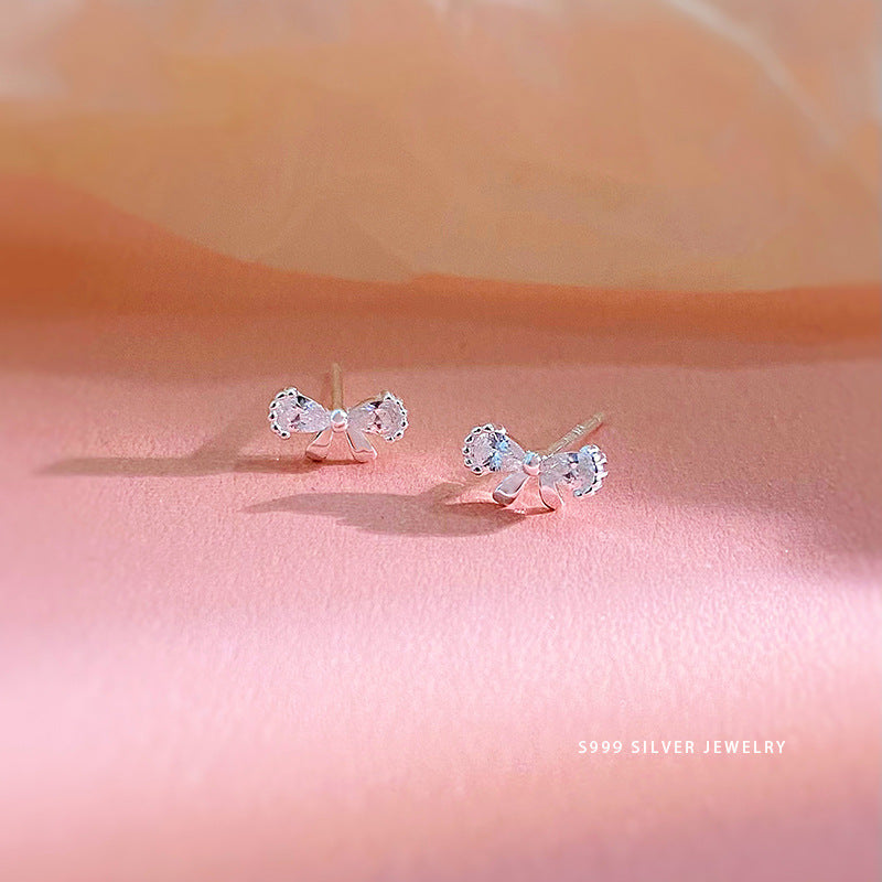 E廠【YC10204E】S999足銀甜美蝴蝶結耳環女蝴蝶結可愛時尚輕奢百搭耳飾 24.06-2